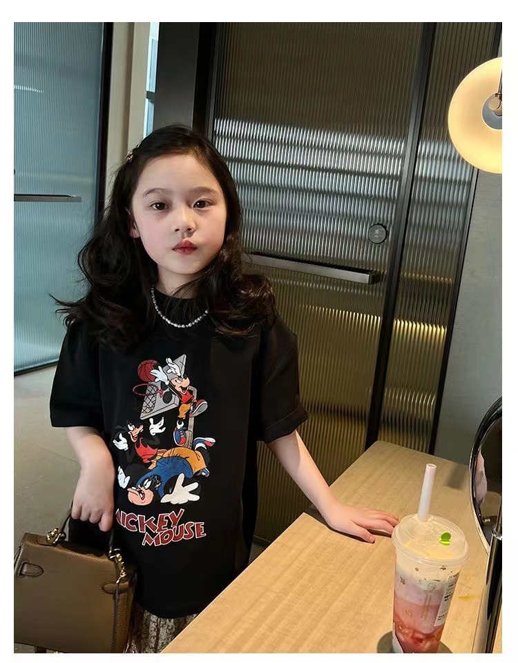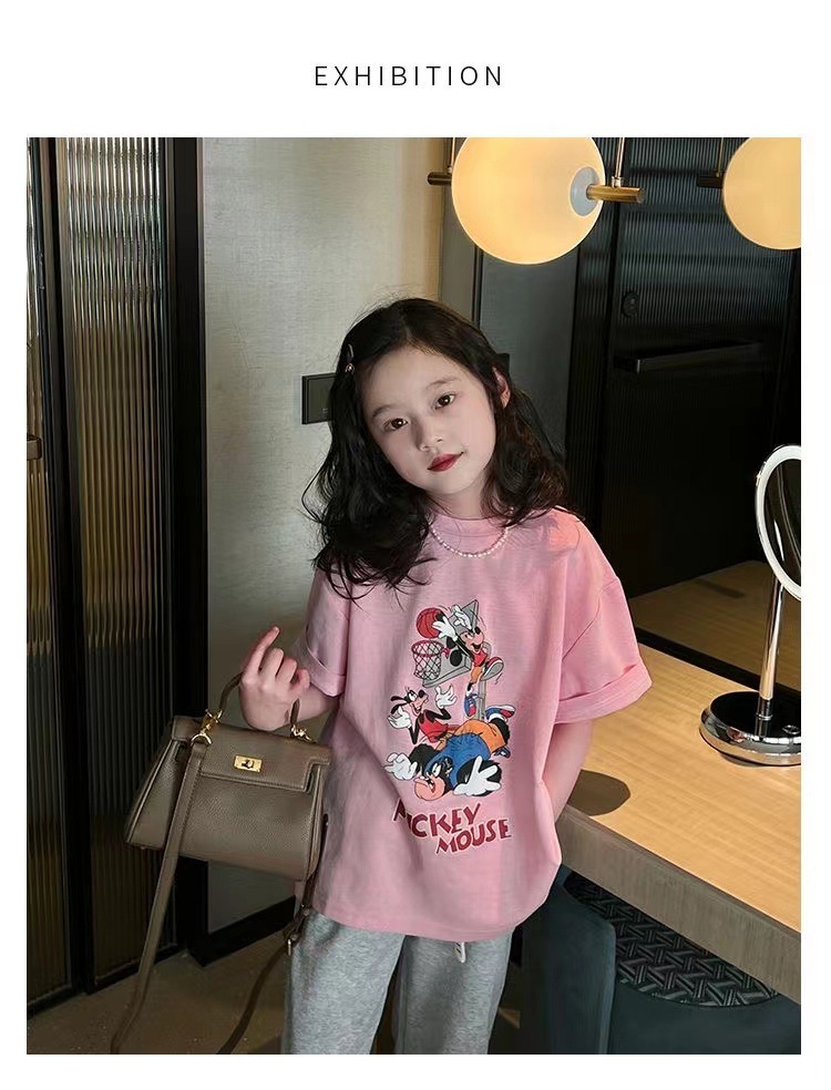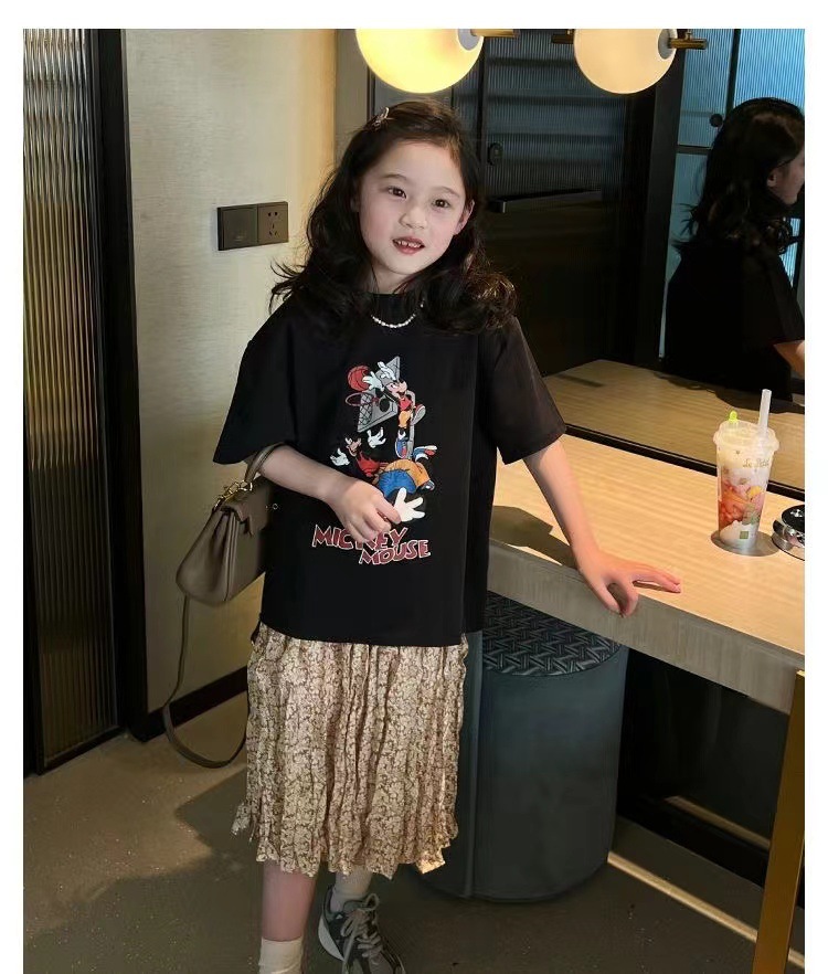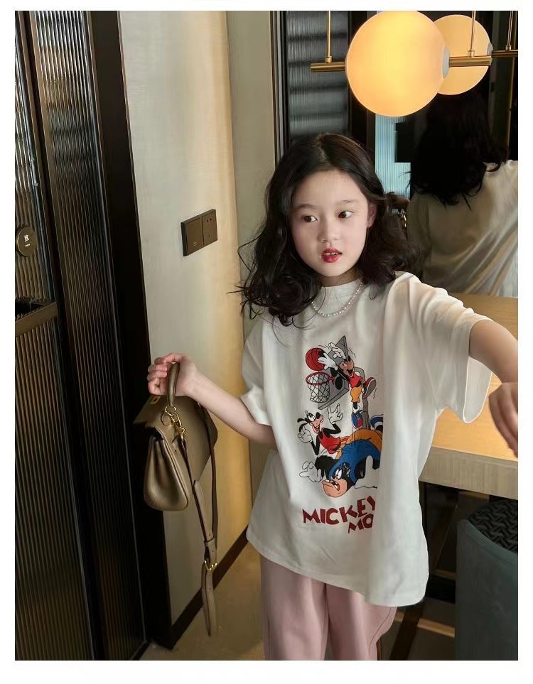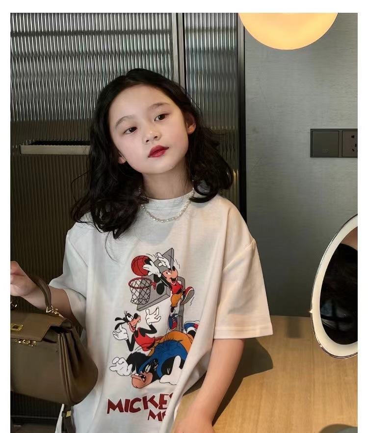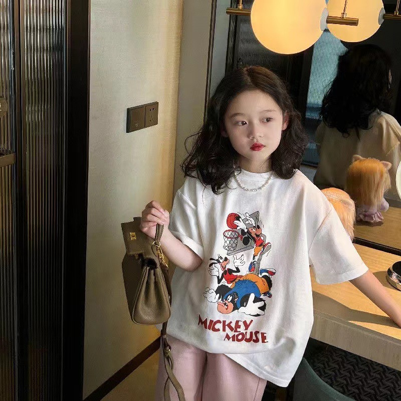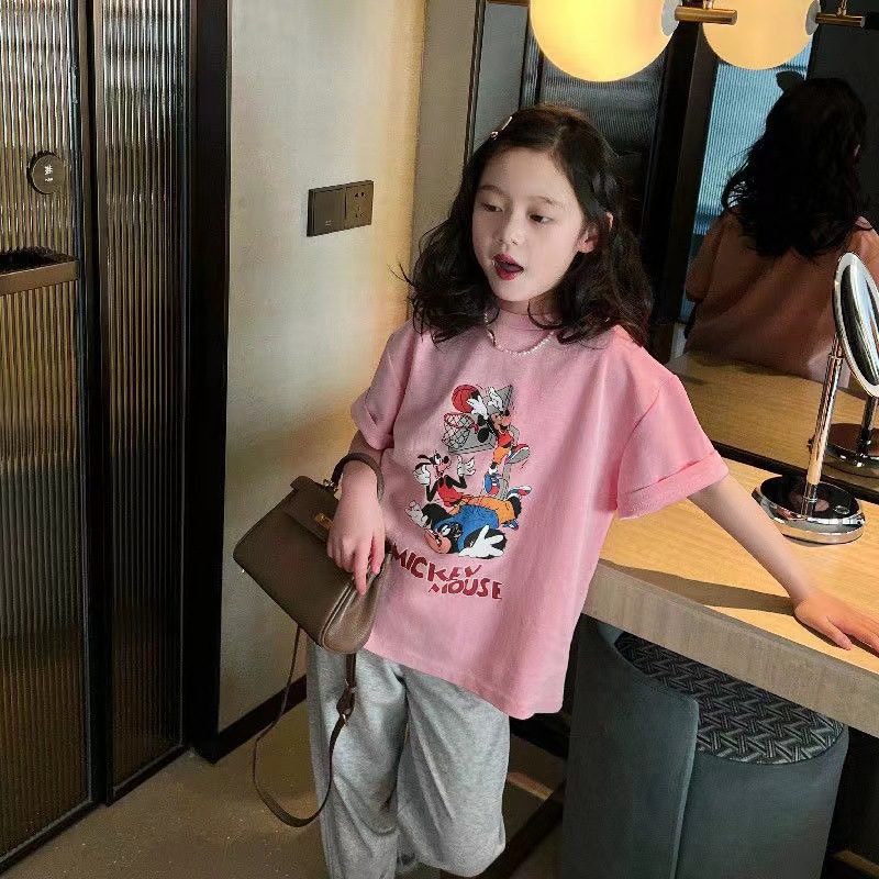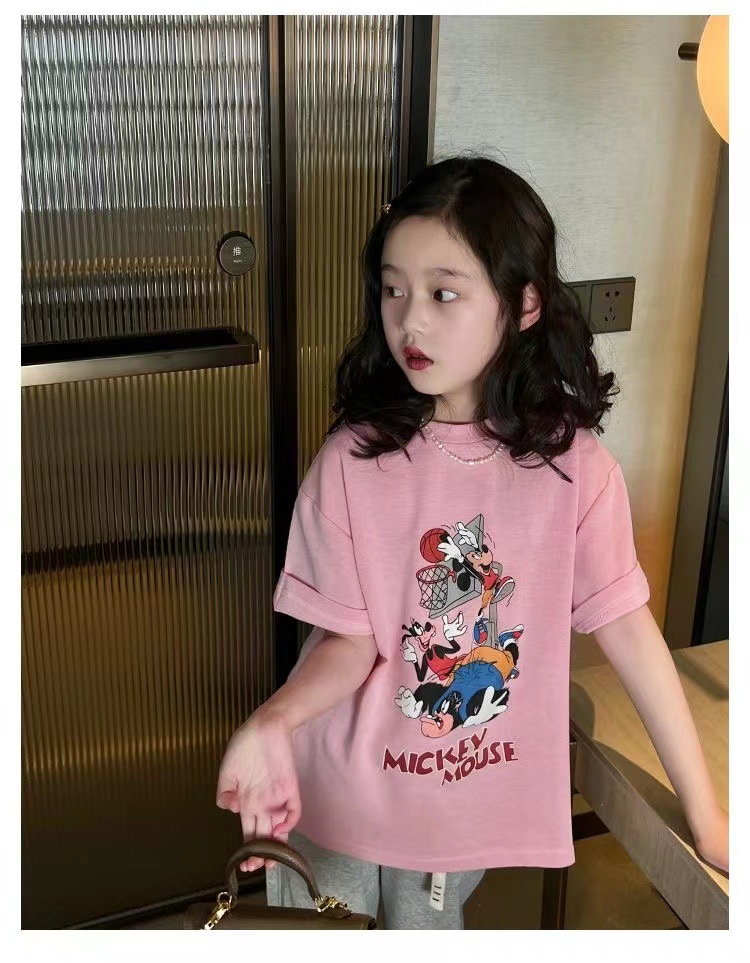 소녀 반팔 티셔츠 퓨어 코튼 여름 유행 서양 스타일 큰 어린이 새로운 만화 인쇄 티셔츠 캐주얼 탑스토어 가기