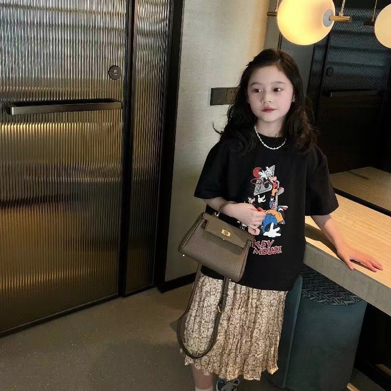 소녀 반팔 티셔츠 퓨어 코튼 여름 유행 서양 스타일 큰 어린이 새로운 만화 인쇄 티셔츠 캐주얼 탑