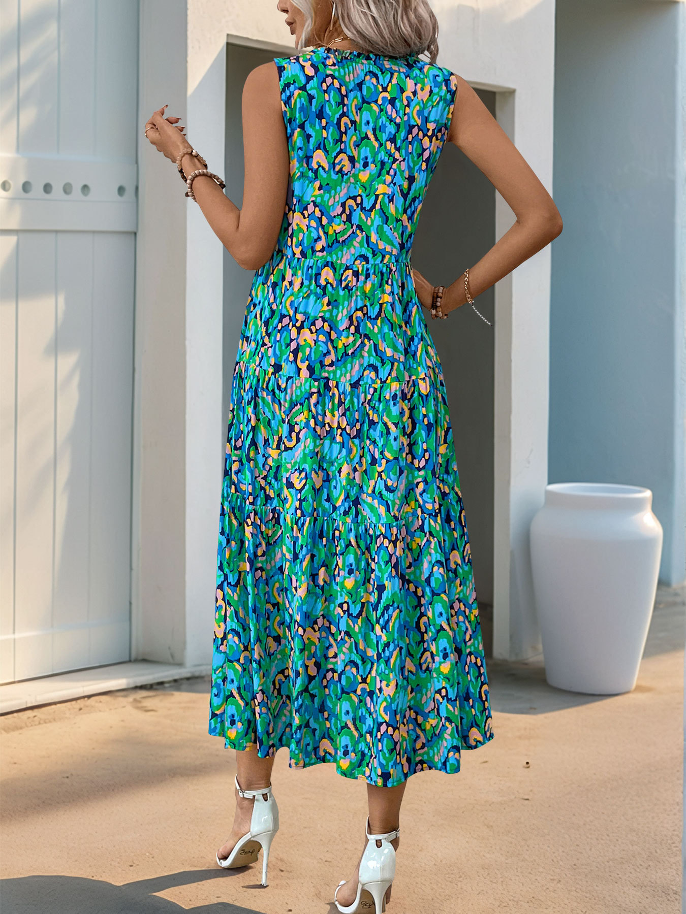 【백퍼센트 의류】2025 신상 유럽 및 미국 여름 해변 휴가용 민소매 추상 프린트 원피스