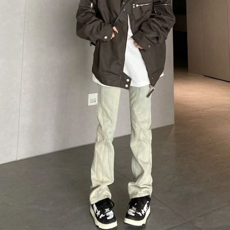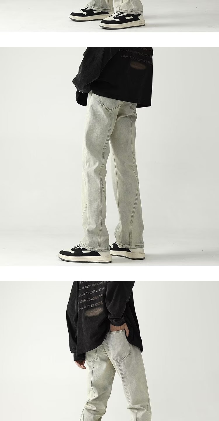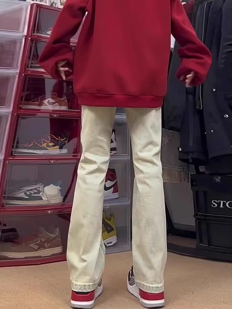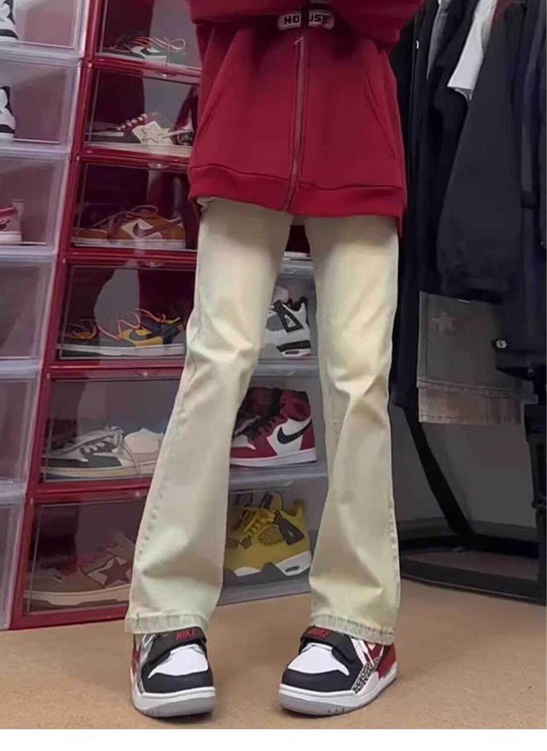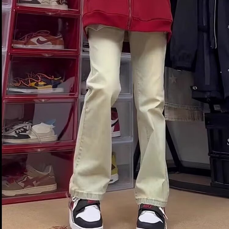 아메리칸 스타일 하이 스트리트 청바지 남성용 레트로 바이브 바지 트렌디 브랜드 세탁 옐로우 머드 다이 틈새 슬림 핏 스트레이트 바지스토어 가기