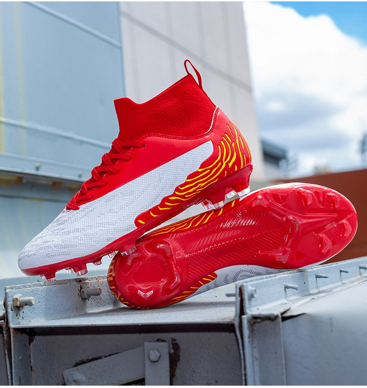 새로운 하이 탑 축구 신발 남성용 스파이크 미끄럼 방지 성인 청소년 학생 전문 대회 훈련 운동화