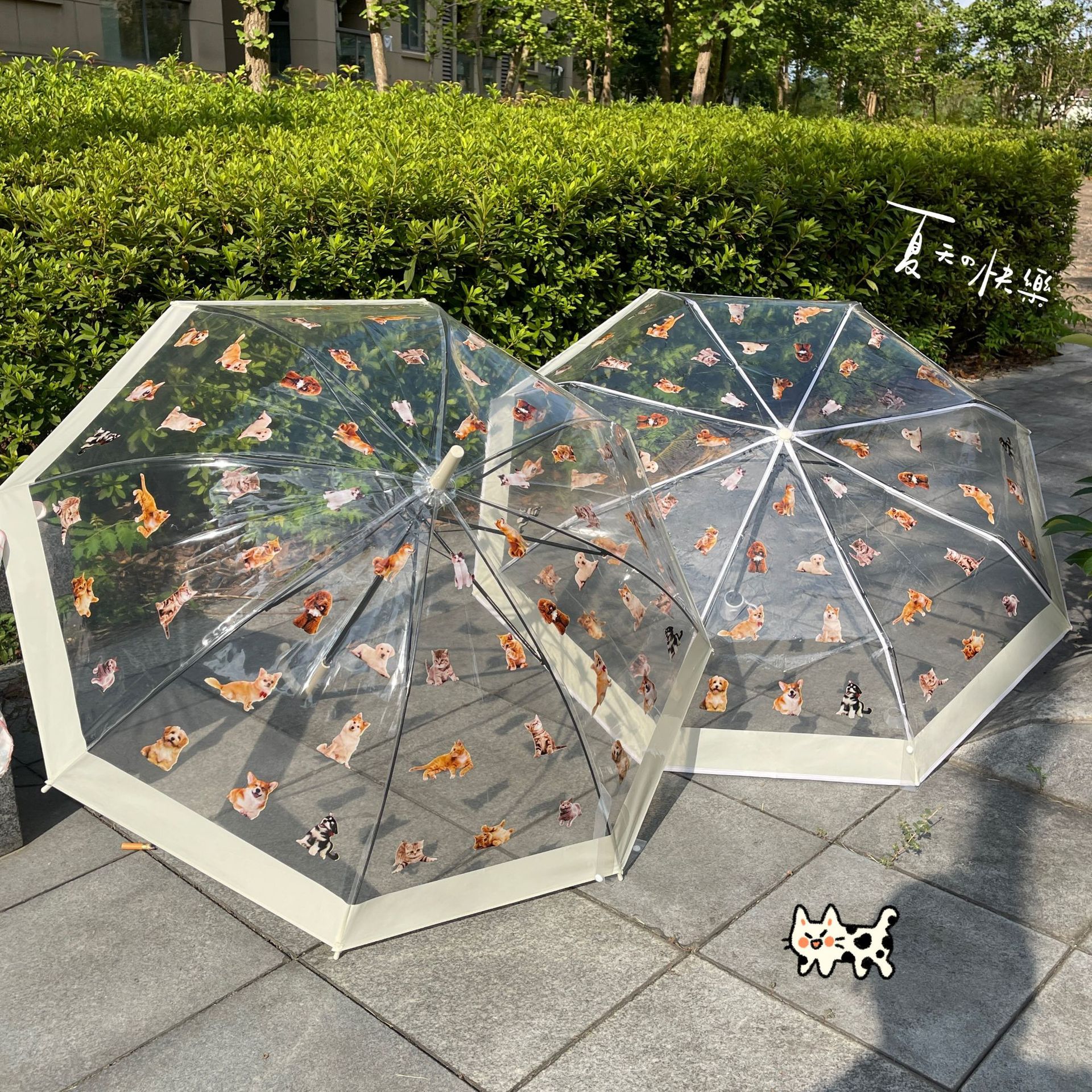 • 고양이와 개 자동 투명 우산-우산 표면 두껍게