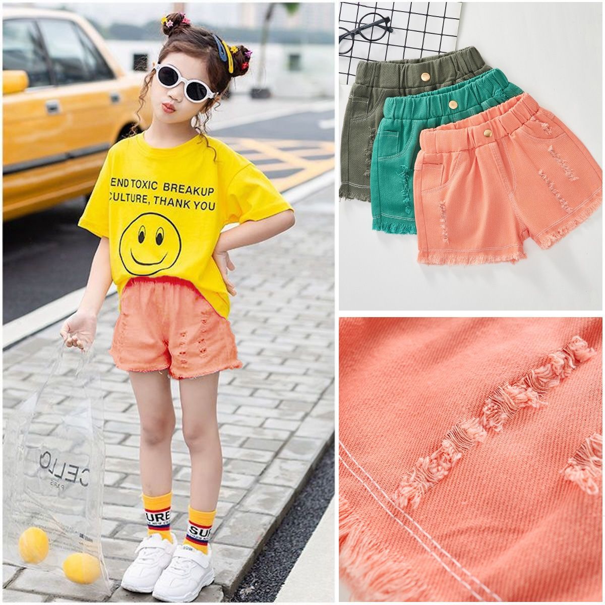 여자 반바지 여름 착용 2025 어린이 스타일 데님 반바지 겉옷 핫팬츠 찢어진 데님 반바지스토어 가기