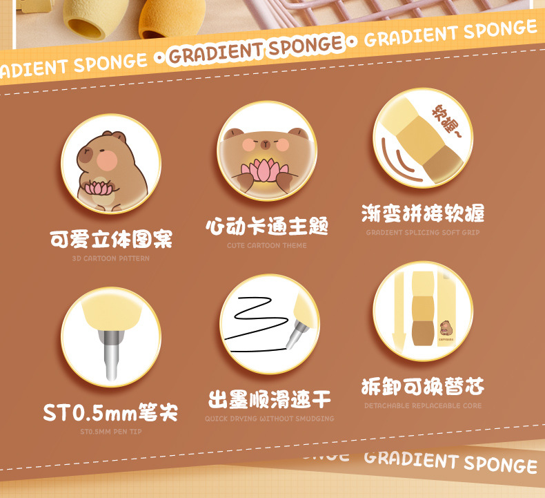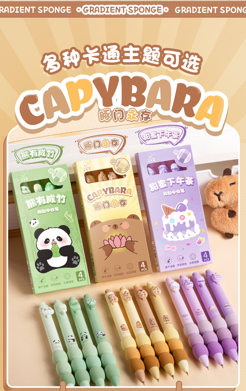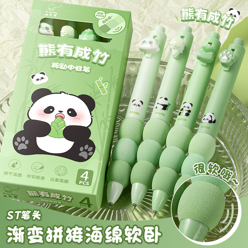 귀여운 팬더 프레스 젤 펜 학생 빠른 드라이 브러시 펜 높은 색상 가치 그라디언트 스펀지 소프트 그립 ST 펜