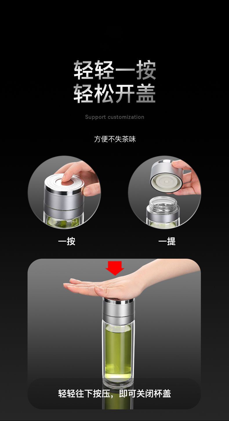워터 컵 원 버튼 오픈 뚜껑 남자 티 컵 라이트 럭셔리 하이 엔드 티 별도의 컵 유리 빠른 오픈 컵 인쇄 가능