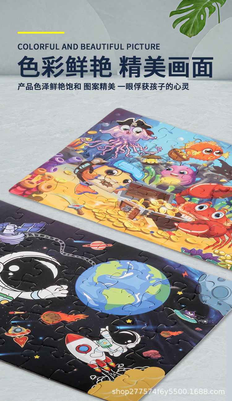 48 조각 종이 직소 퍼즐 장난감 어린이 교육 조기 교육 장난감 유치원 손 선물 선물 국경 영어 포장