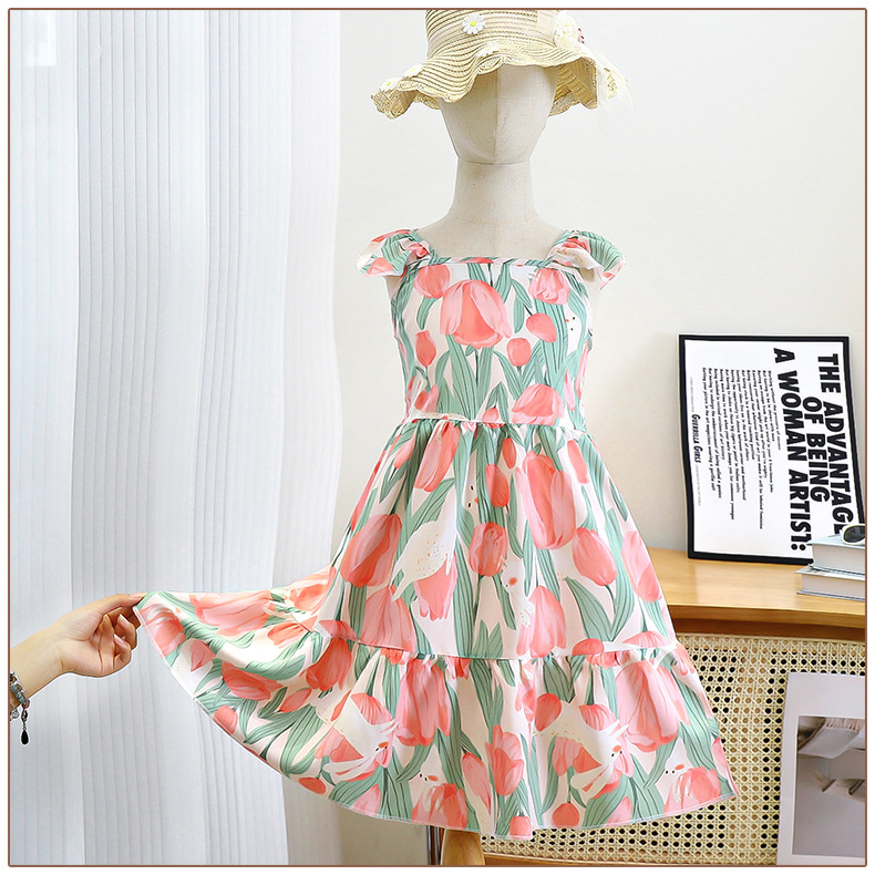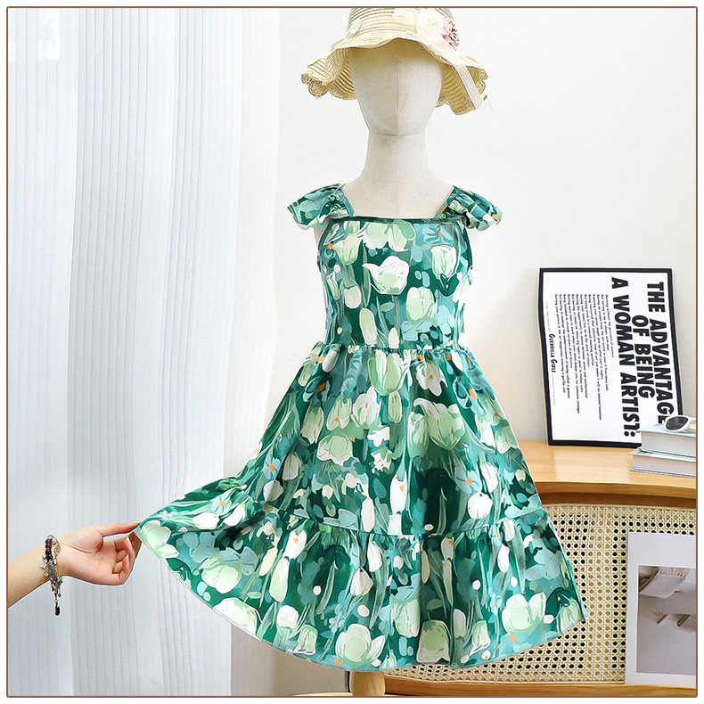 어린이 새 원피스 소녀의 꽃 공주 원피스 소녀의 얇은 슬립 원피스 신선한 스타일 모리 스타일 캐주얼 원피스