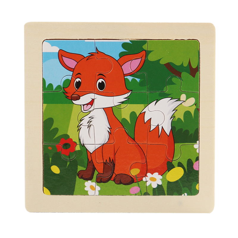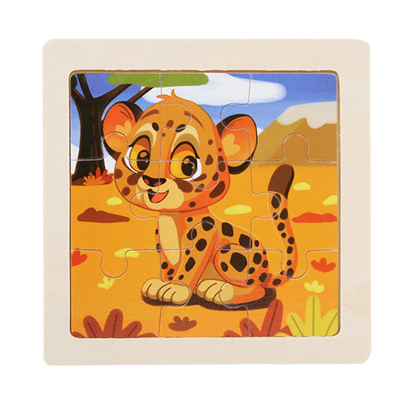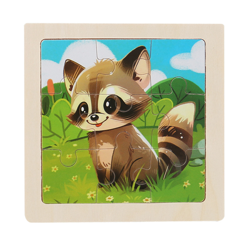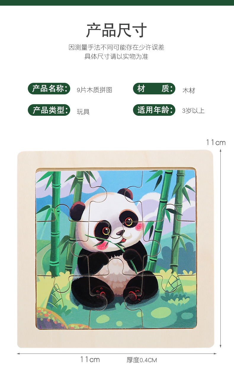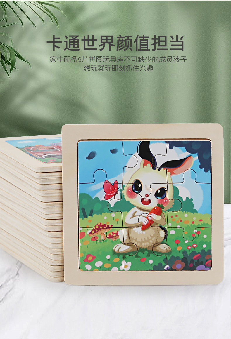 나무 만화 동물 교통인지 작은 9 조각 비행기 퍼즐 유치원 아기 조기 교육 퍼즐 장난감스토어 가기