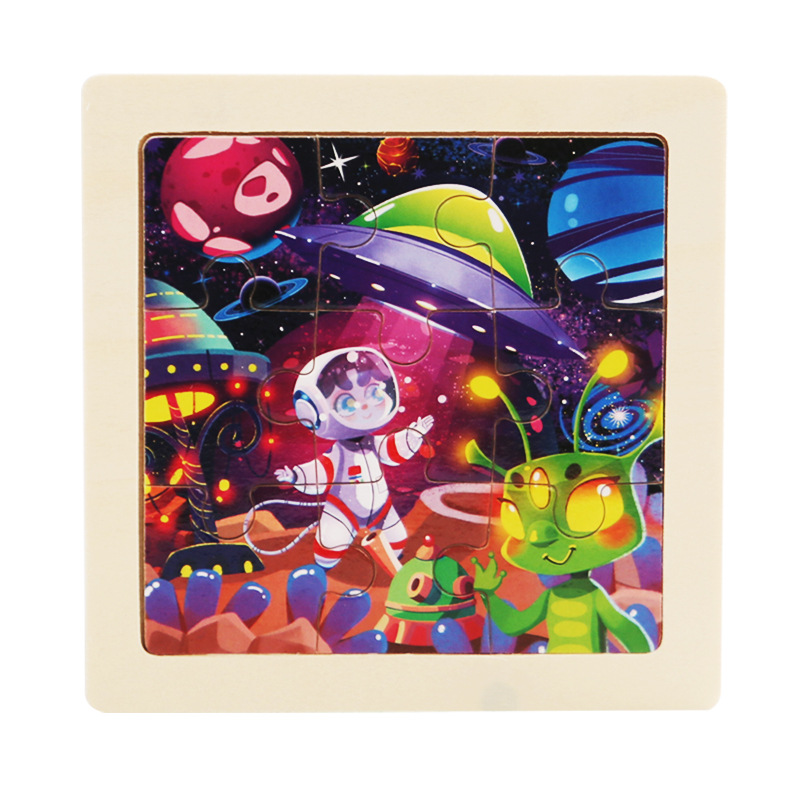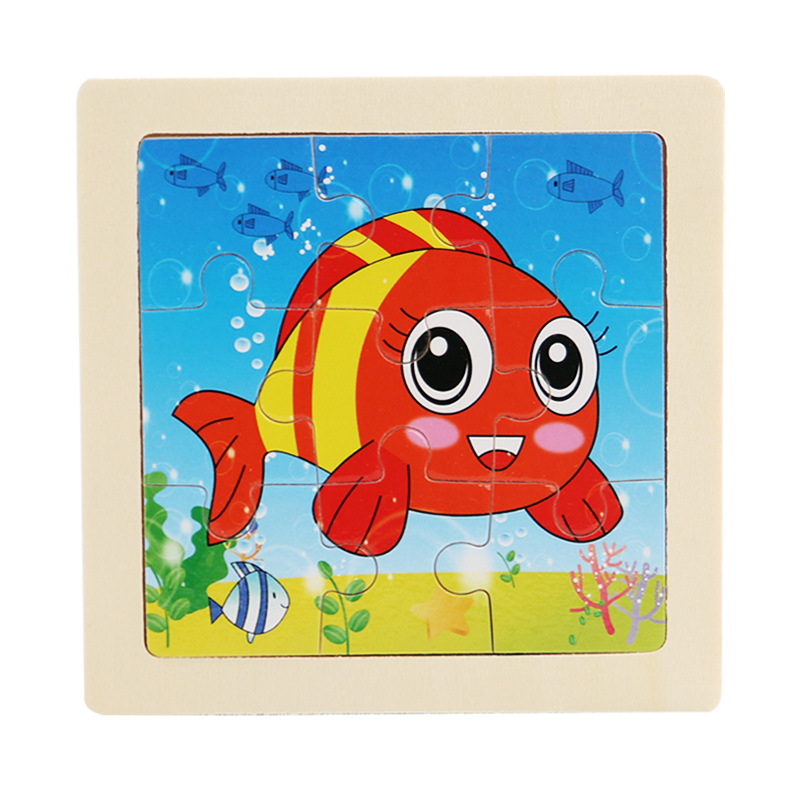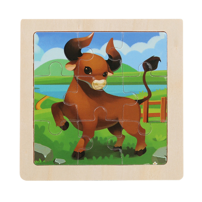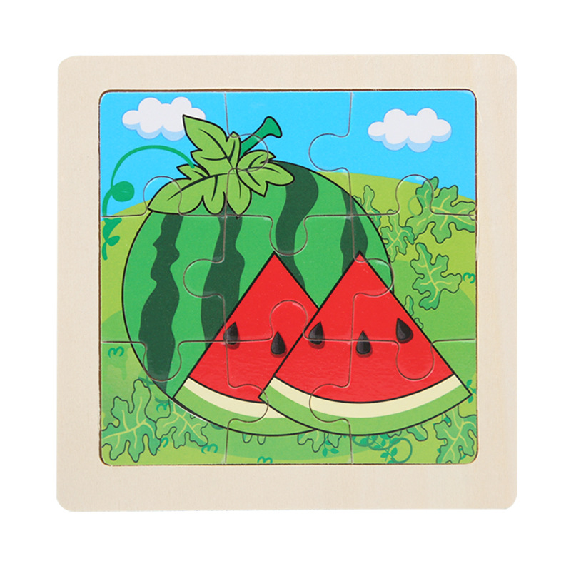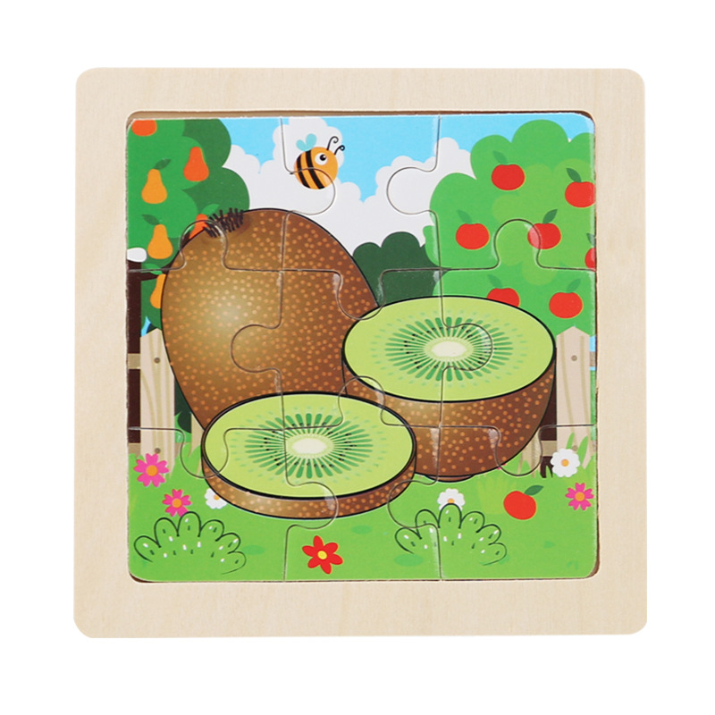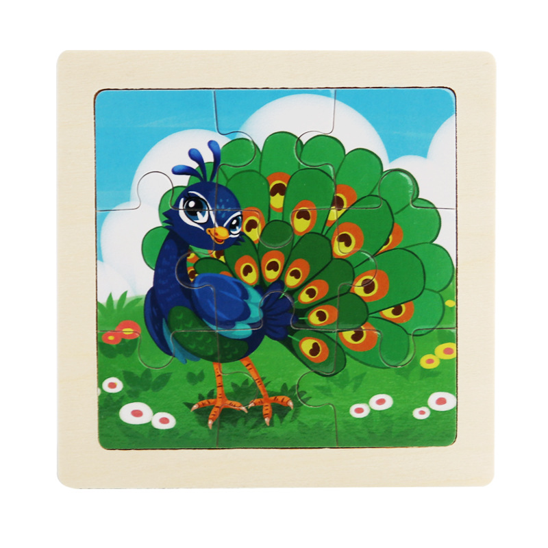 나무 만화 동물 교통인지 작은 9 조각 비행기 퍼즐 유치원 아기 조기 교육 퍼즐 장난감스토어 가기