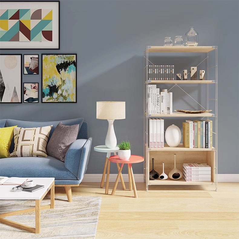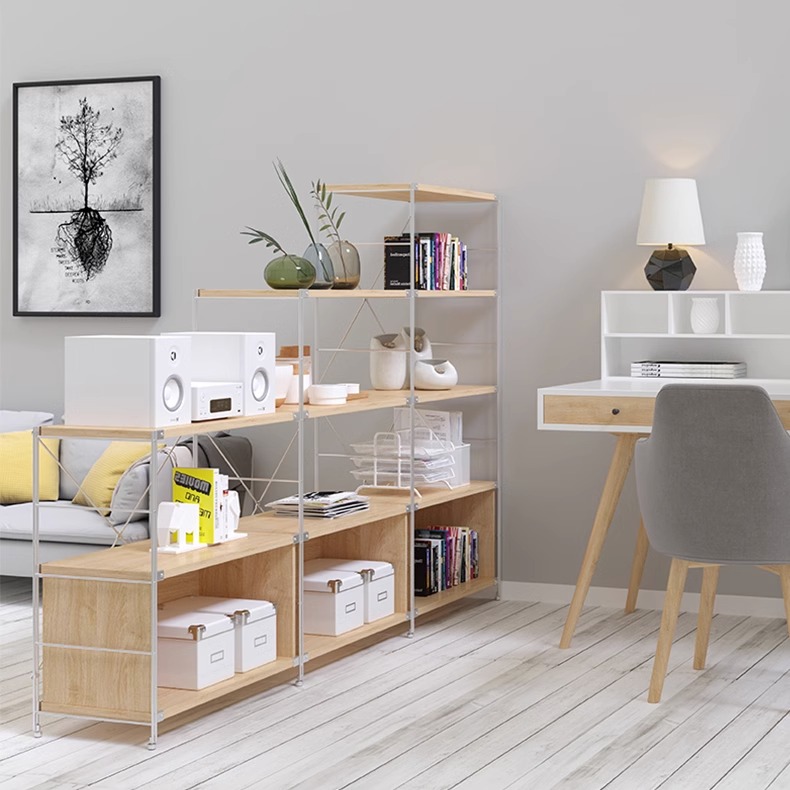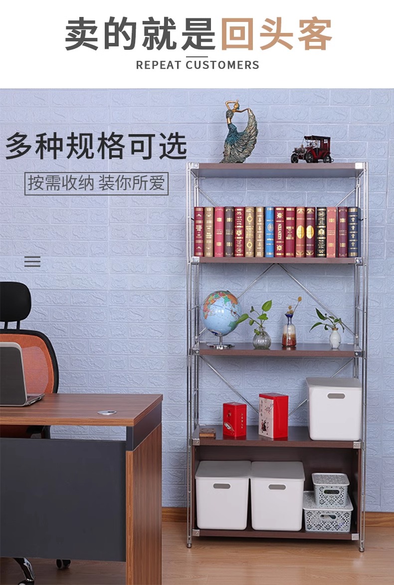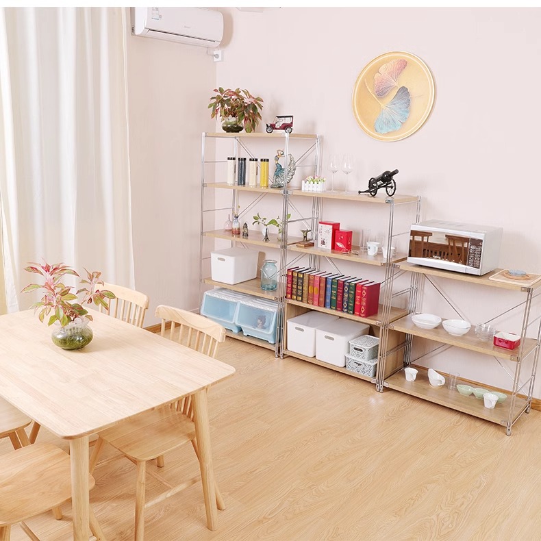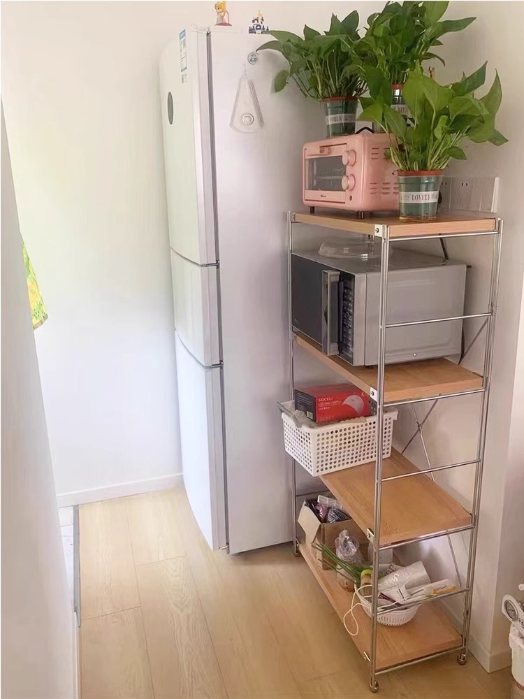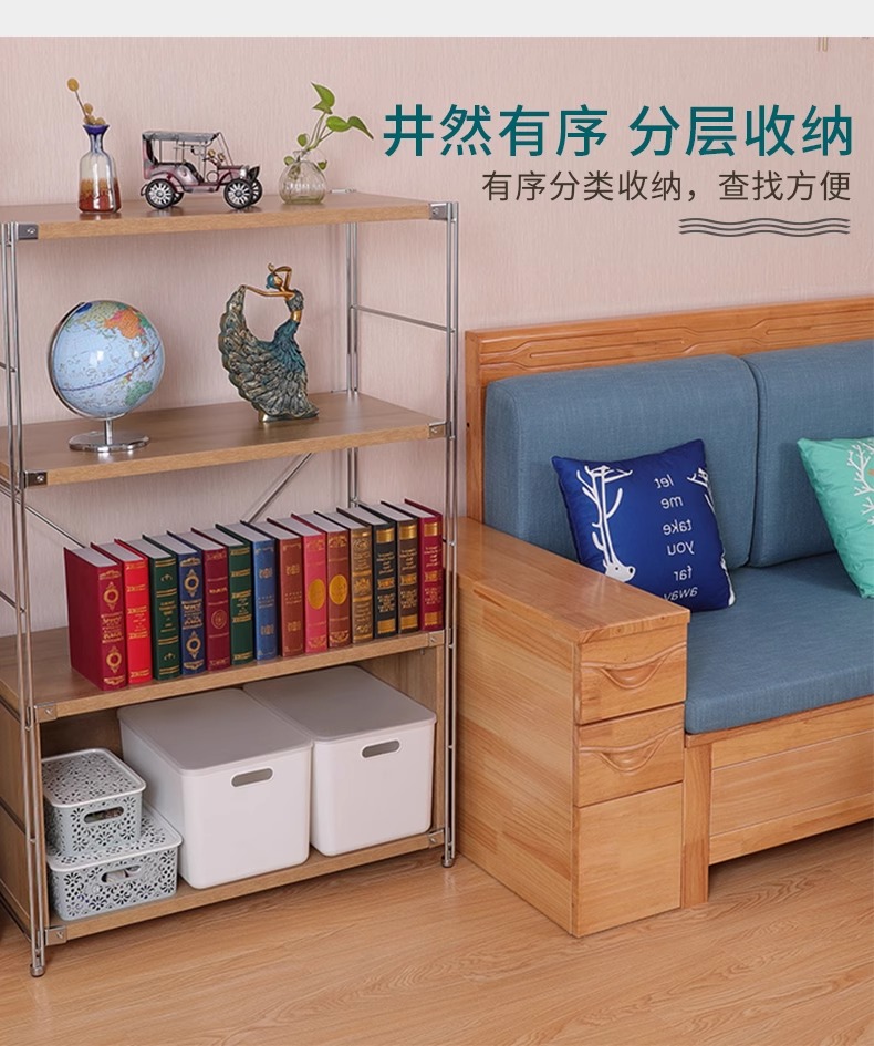 9C 일본식 스테인레스 스틸 솔리드 우드 선반 바닥 스탠딩 발코니 다층 책장 주방 전자 레인지 보관스토어 가기