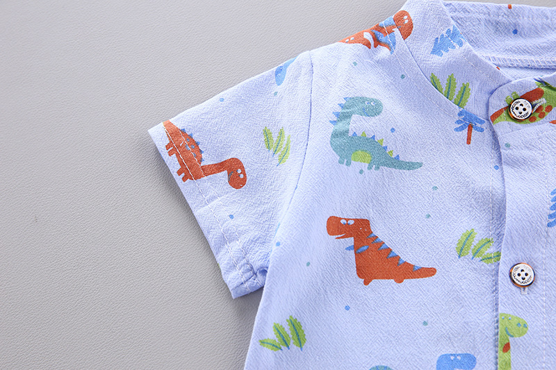 여름 소년 전체 인쇄 공룡 셔츠 반팔 세트 새로운 세련된 세련된 반팔 세트 무역 트렌디