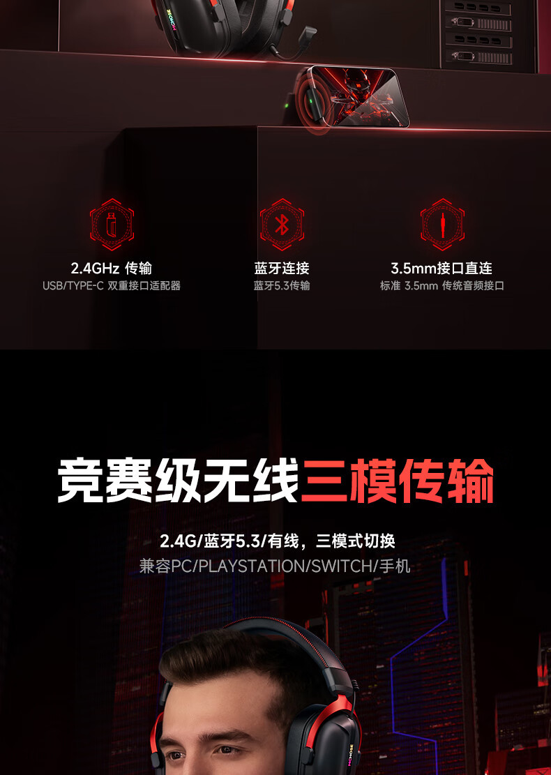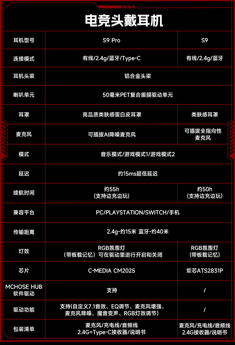 MCHOSE Mai S9 헤드셋 3 모드 비디오 게임 듣기 및 음성 토론 블루투스 컴퓨터 무선 헤드셋