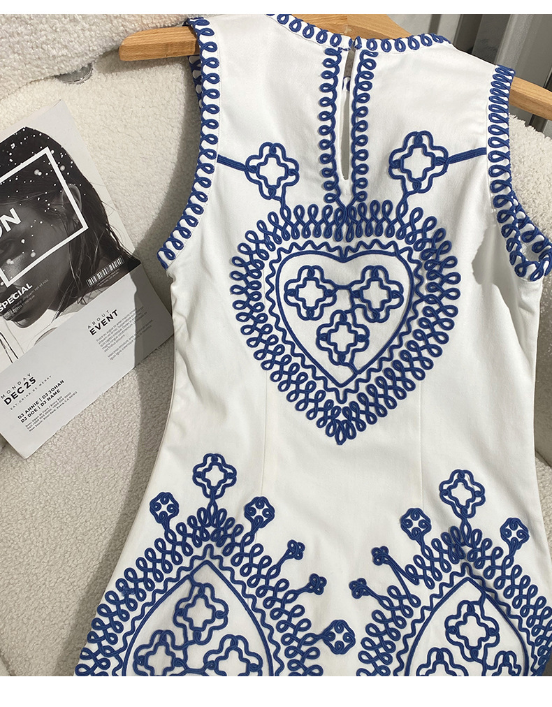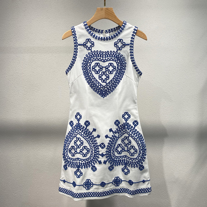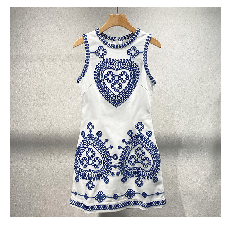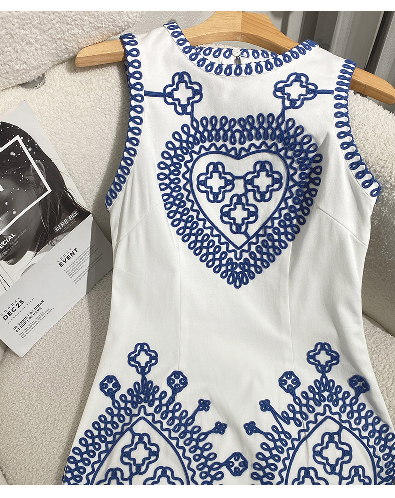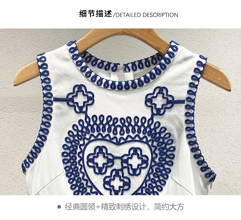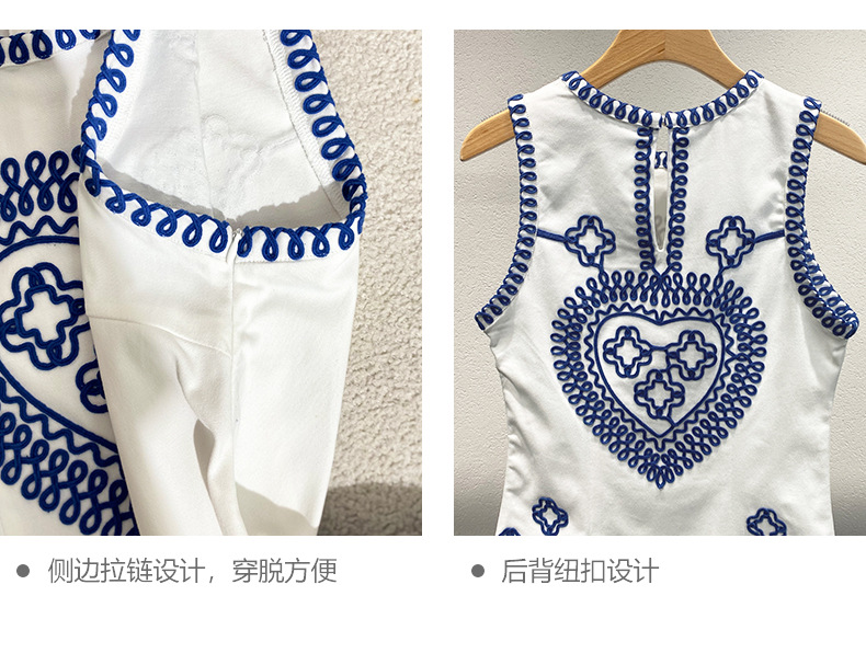 Xiaozhong 2024 여름 새로운 화이트 빈티지 Gouhua 라운드 넥 민소매 원피스