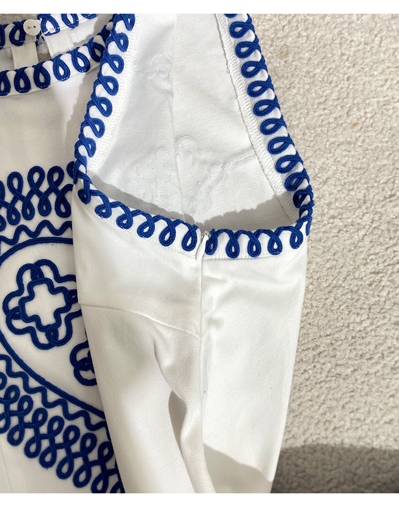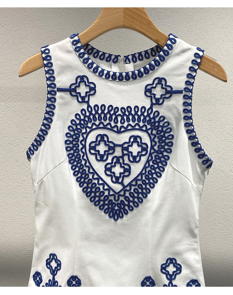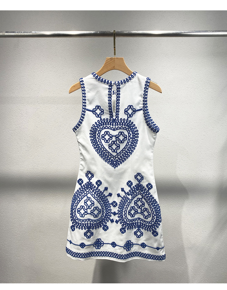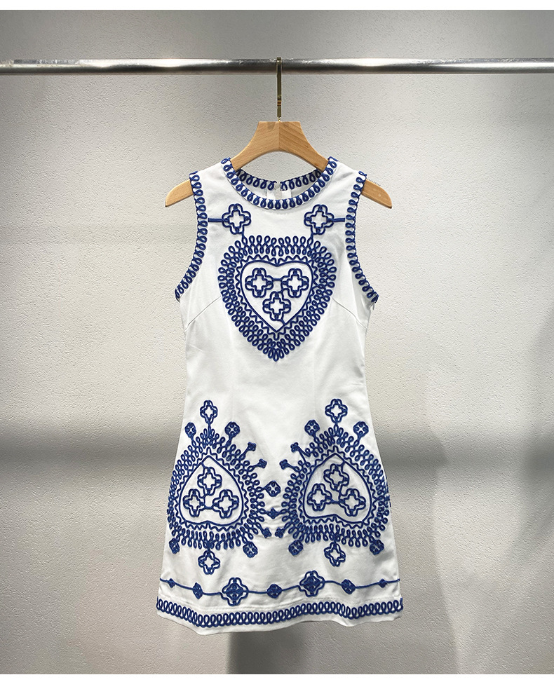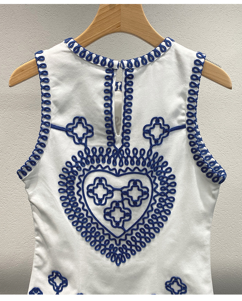 Xiaozhong 2024 여름 새로운 화이트 빈티지 Gouhua 라운드 넥 민소매 원피스