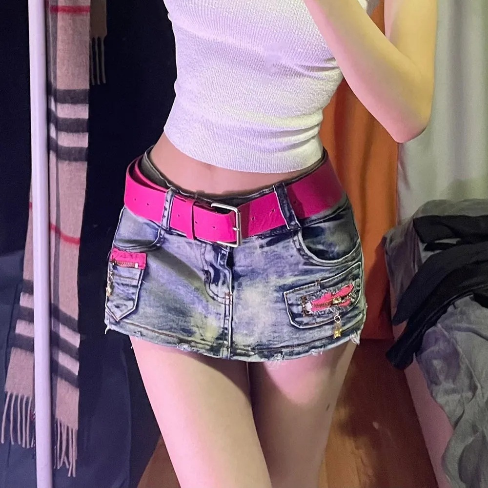 세탁 블루 데님 스커트 여성 여름 뜨거운 소녀 미니 스커트 레트로 높은 허리 엉덩이 스커트 안티 라이트 스커트스토어 가기