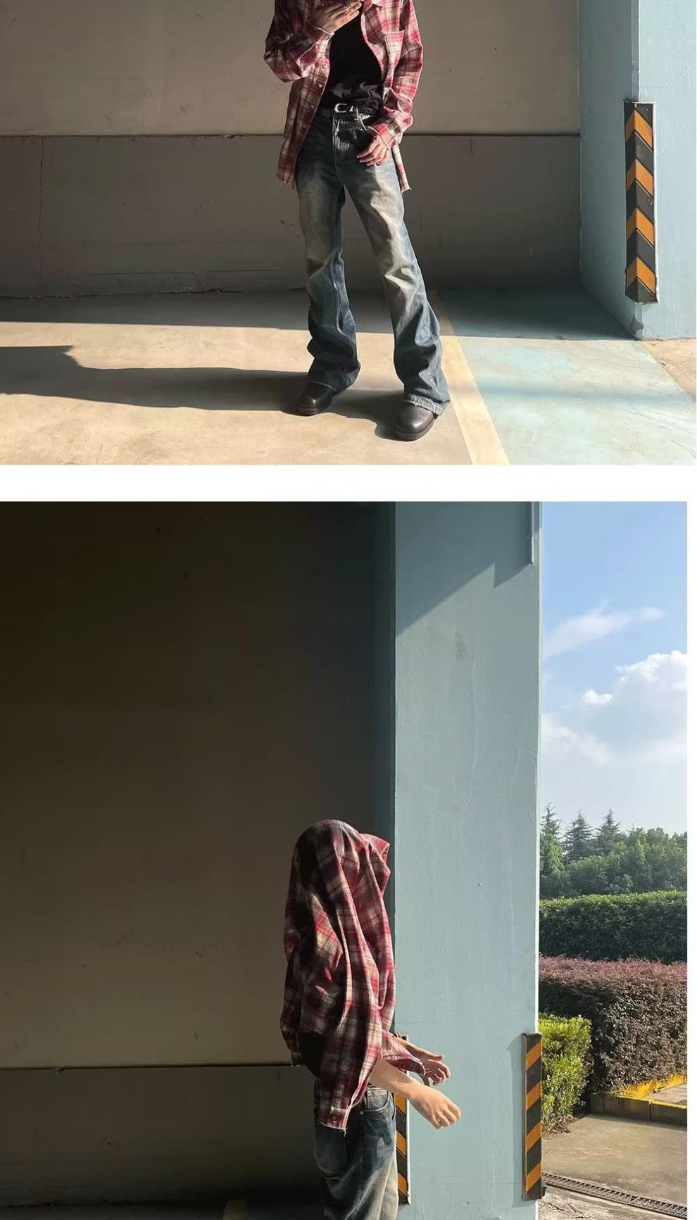 봄과 가을 격자 무늬 셔츠 재킷 느슨한 십대 한국 유행 더피 잘 생긴 긴 소매 셔츠 두꺼운 탑스토어 가기