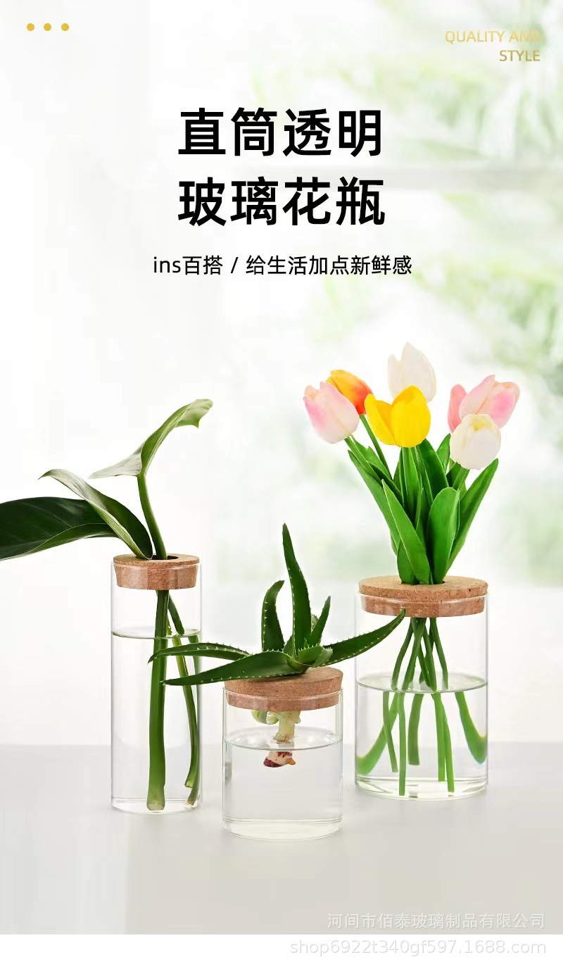 높은 붕규산 유리 마이크로 조경 생태 병 꽃꽂이 장식 기구 수경 식물 병 곧게 작은 꽃병 버킷 어항스토어 가기