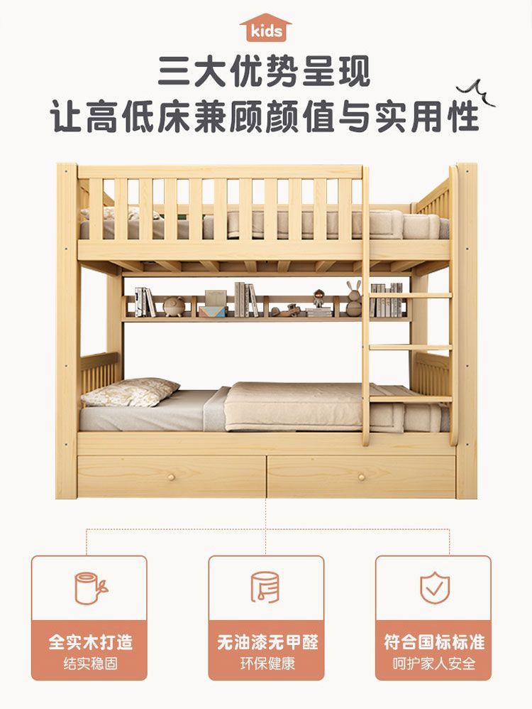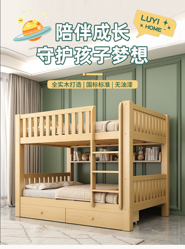 단단한 나무 침대 이층 침대 2 층 침대 높고 낮은 더블 침대 침대 침대 침대 침대 침대 침대 어린이 침대 나무 침대스토어 가기