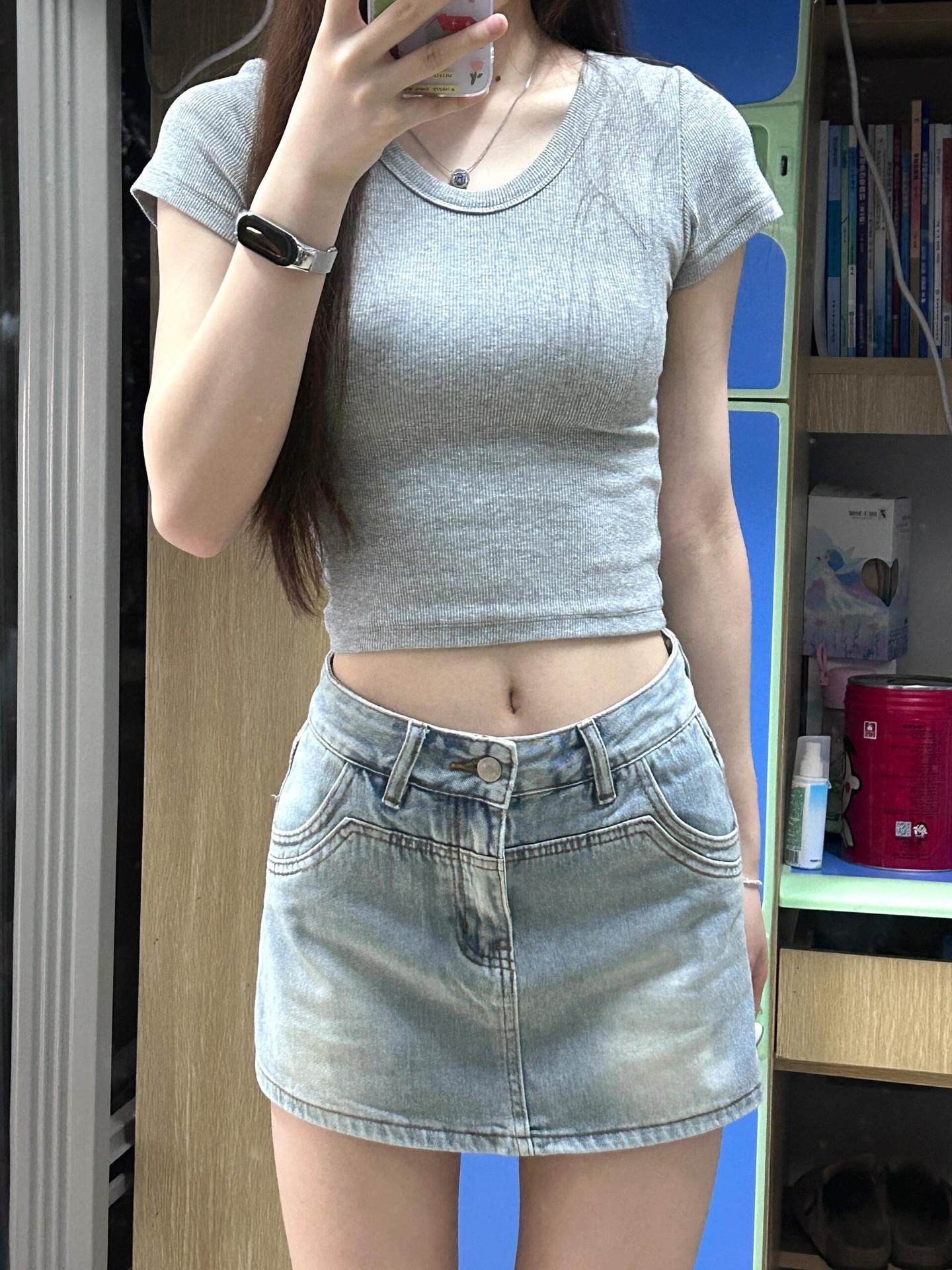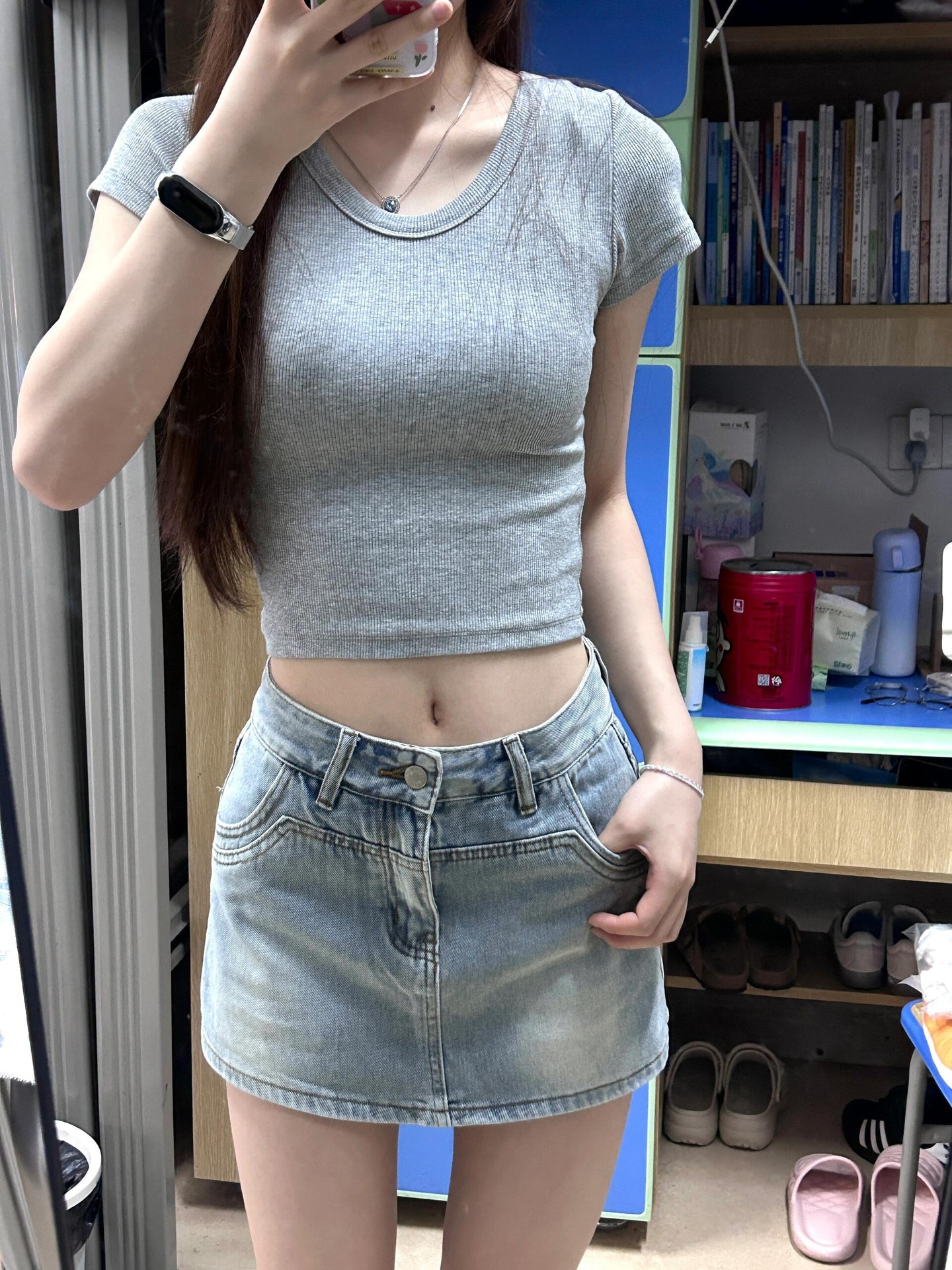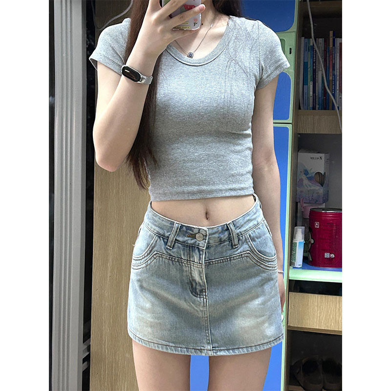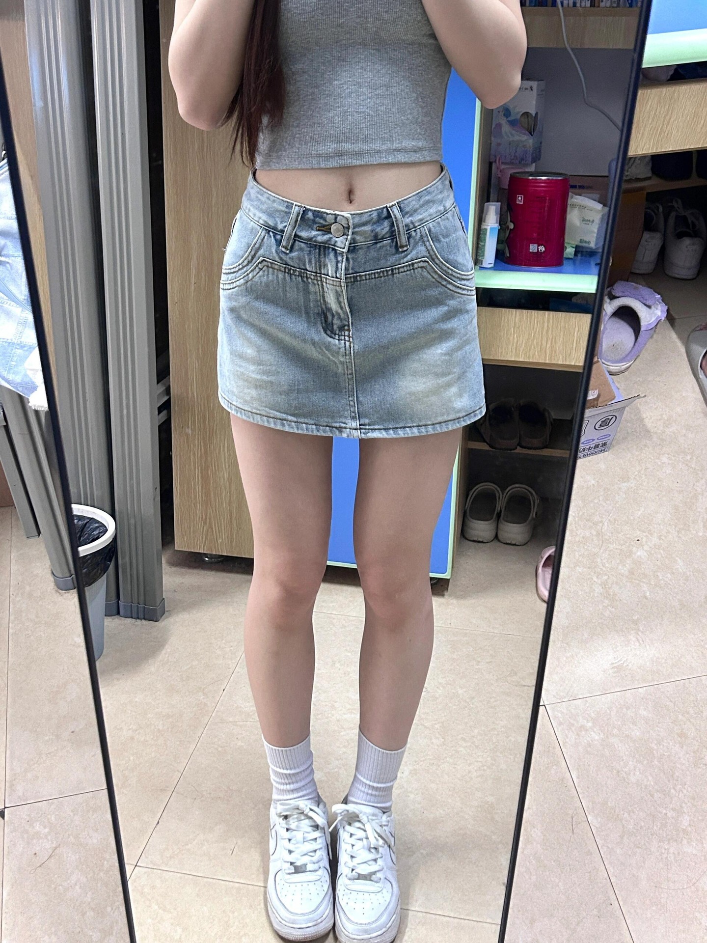 빈티지 높은 허리 데님 반바지 여성 여름 2024 새로운 디자인 센스 틈새 스파이스 소녀 바지 스커트 넓은 다리 핫 스커트스토어 가기