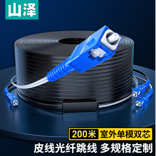 山泽(SAMZHE)皮线光纤跳线 SC-SC室外单模双芯 2芯3钢丝尾纤 低烟无卤网线光纤跳线50米TFH23-50H*1