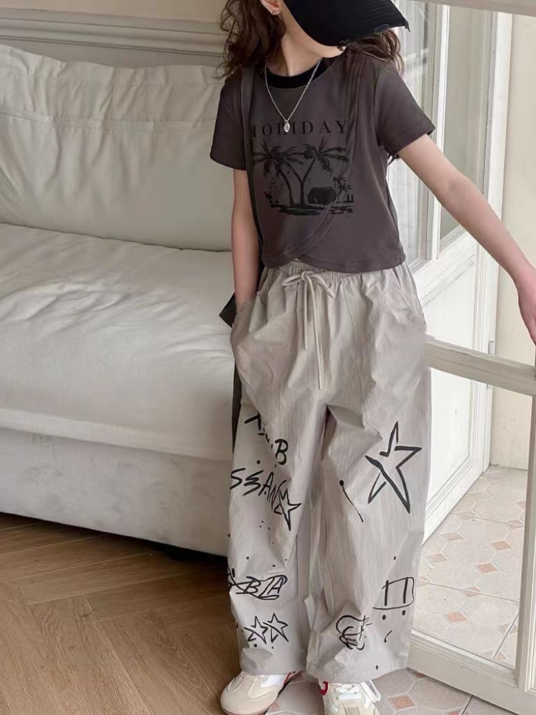 여아 여름 세트 2025 신상 어린이 패션 여름옷 큰 아이들 반팔 티셔츠 캐주얼 바지 투피스 세트