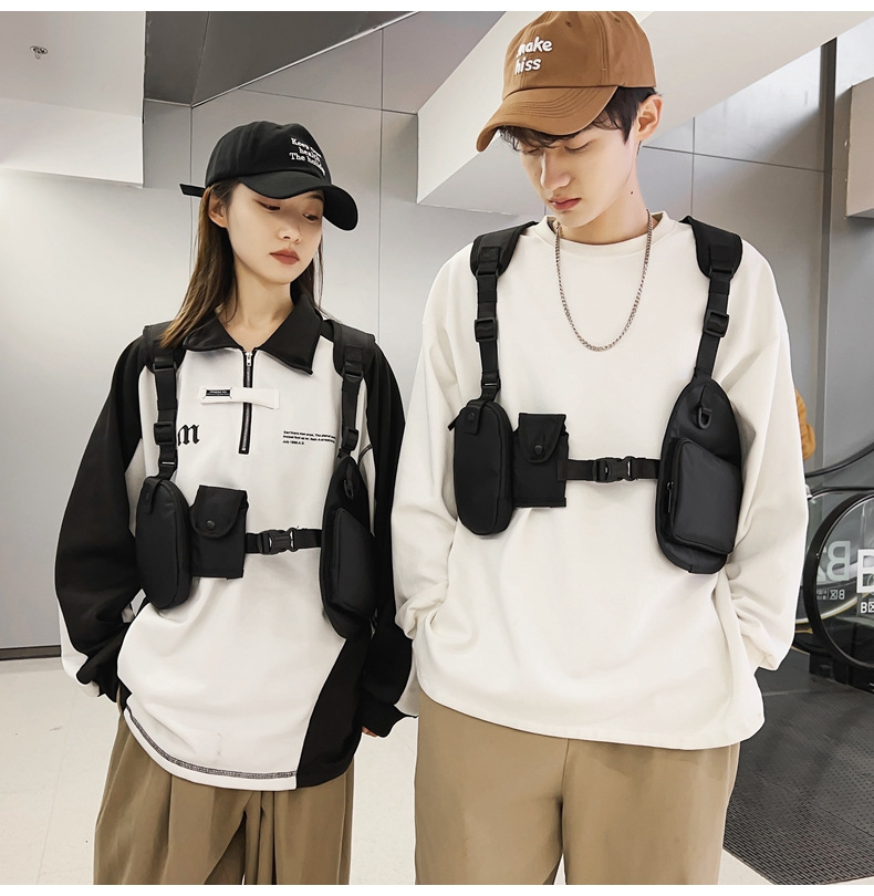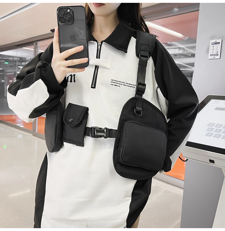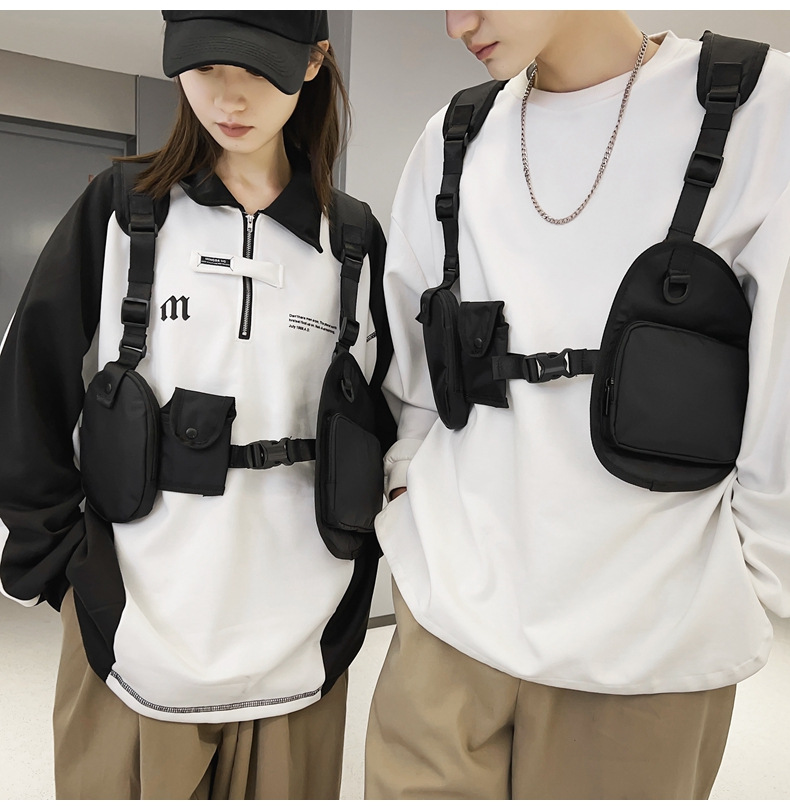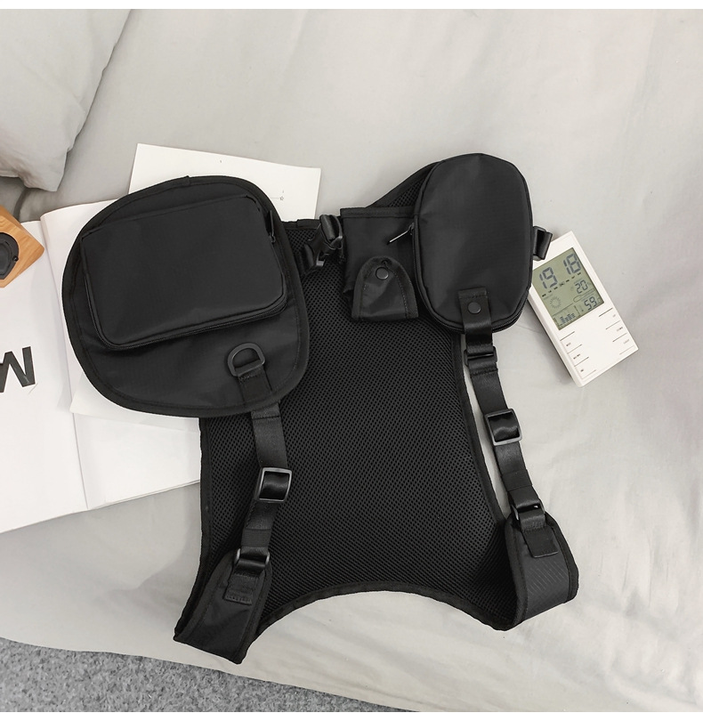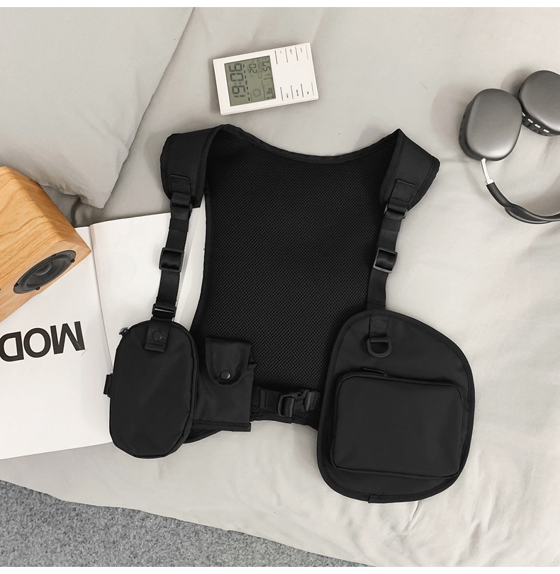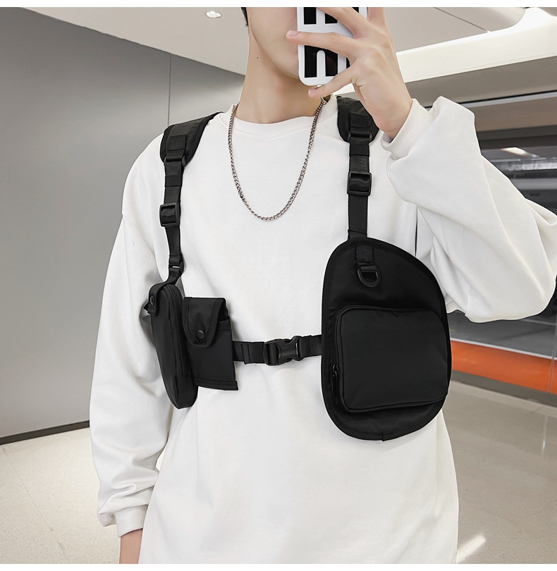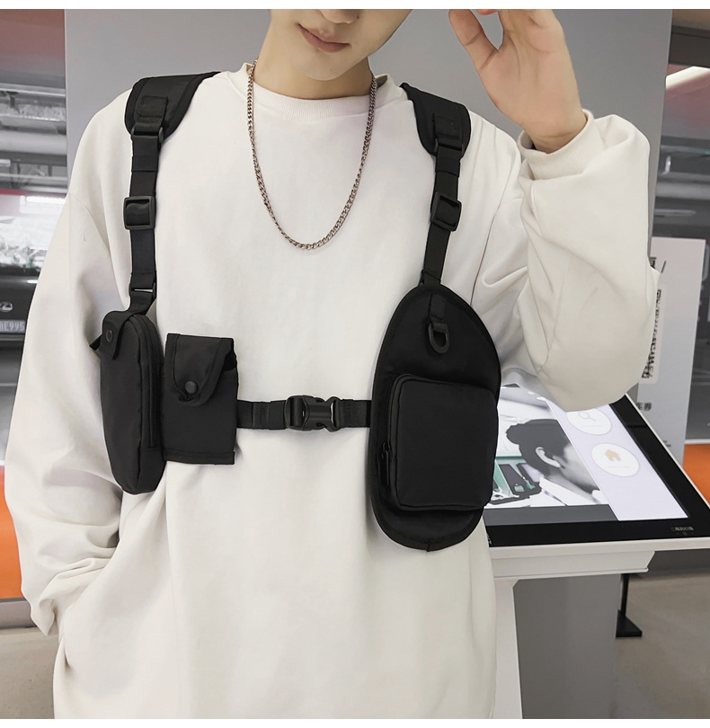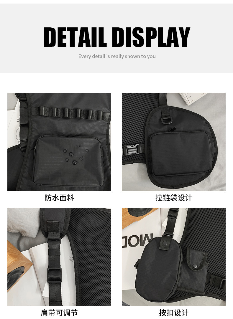 슈퍼 쿨 멀티 포켓 조끼 가방 테이크 아웃 승마 힙합 기능성 가슴 가방 남성용 트렌디 한 툴링 전술 조끼 가방