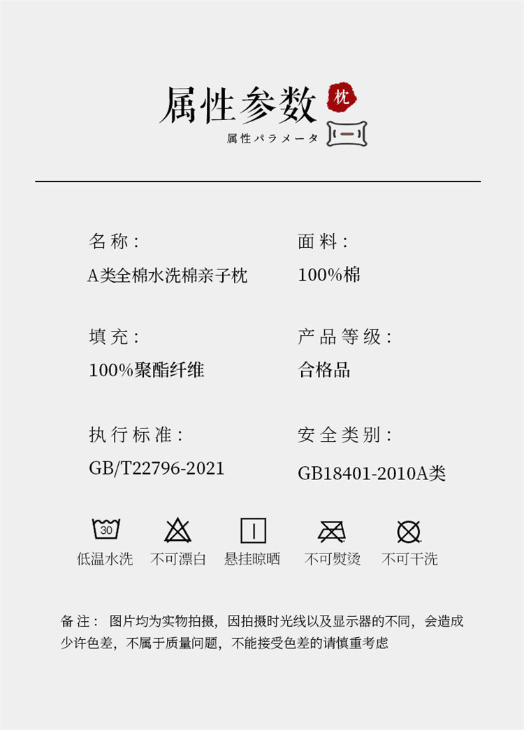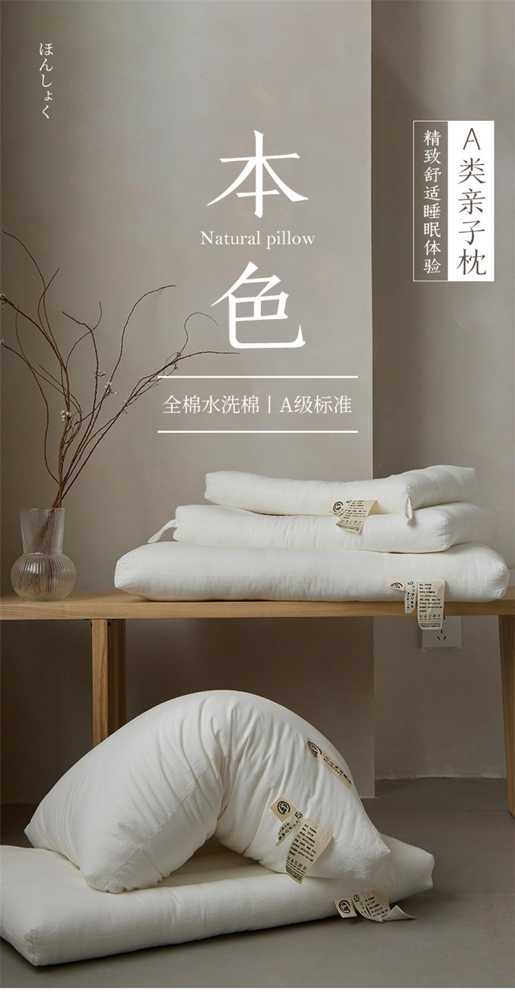 • 씻은 면화-부모-자식 성인 베개 48x74cm