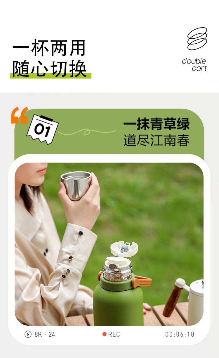 국경 이중 층 강철 뚜껑 대용량 보온병 야외 휴대용 휴대용 더블 음료 스포츠 주전자 등산 여행 주전자