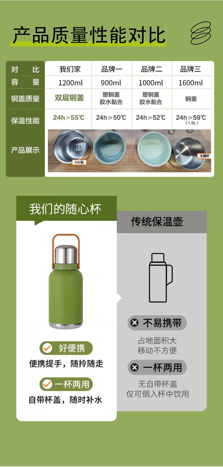 국경 이중 층 강철 뚜껑 대용량 보온병 야외 휴대용 휴대용 더블 음료 스포츠 주전자 등산 여행 주전자스토어 가기