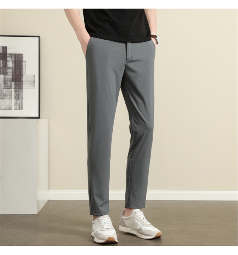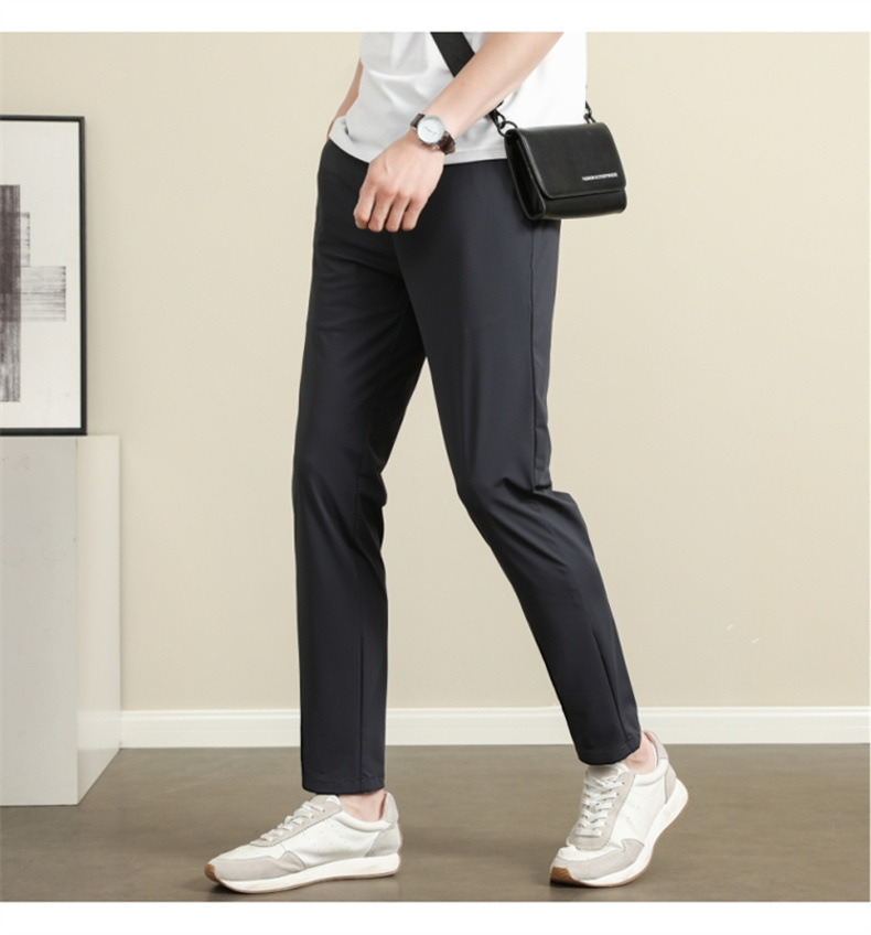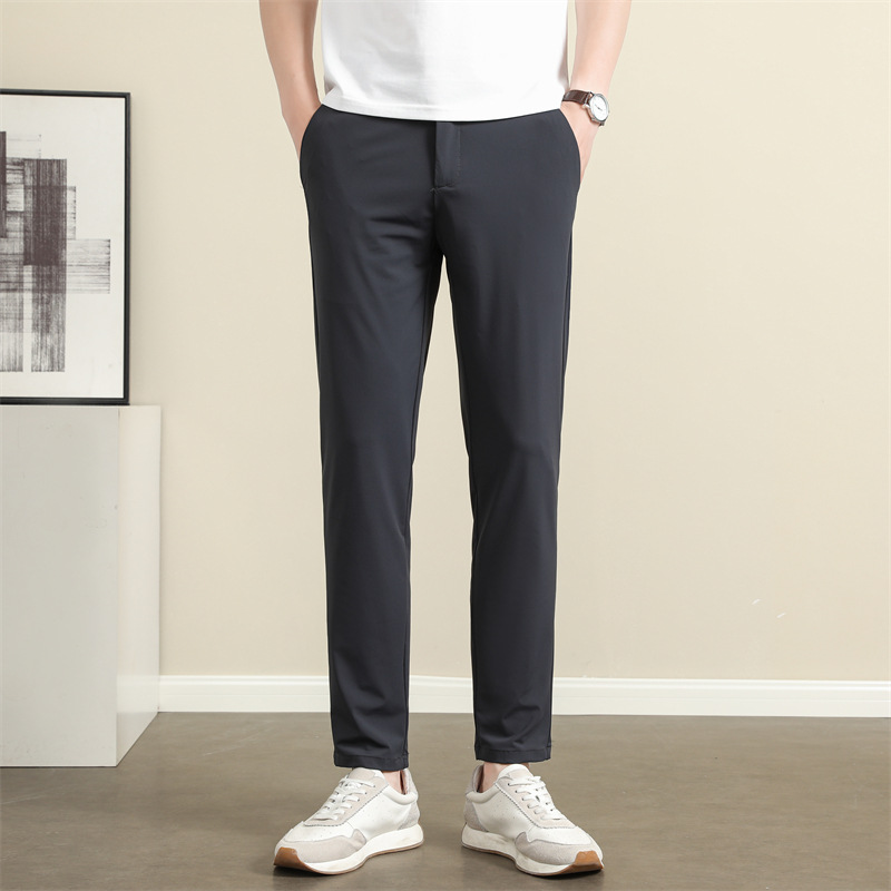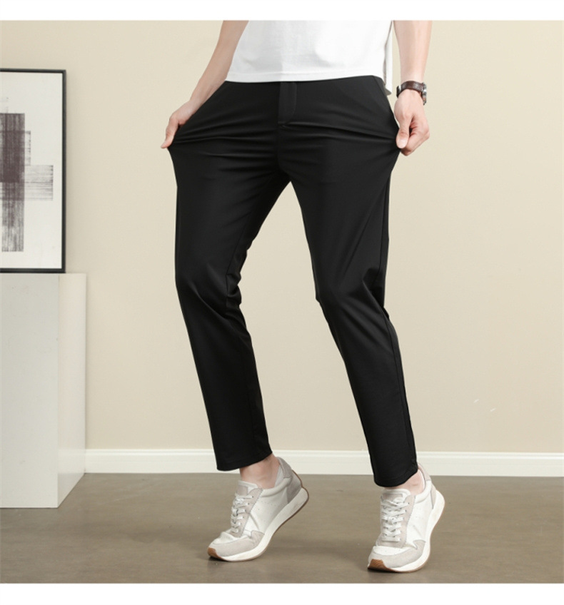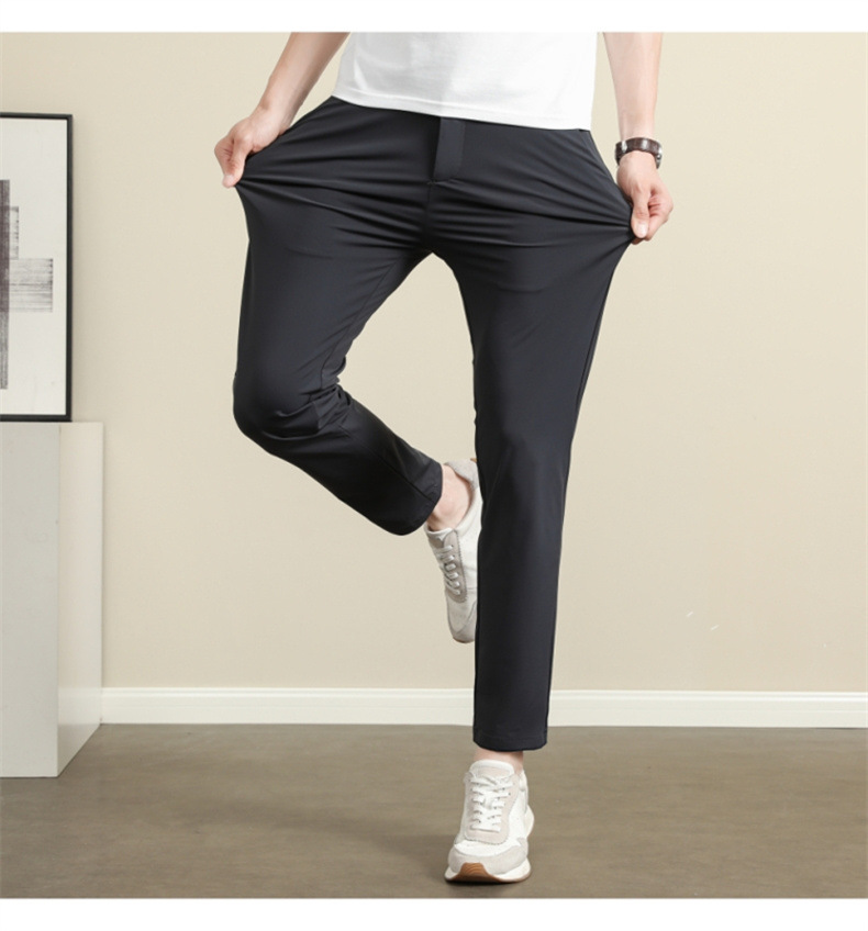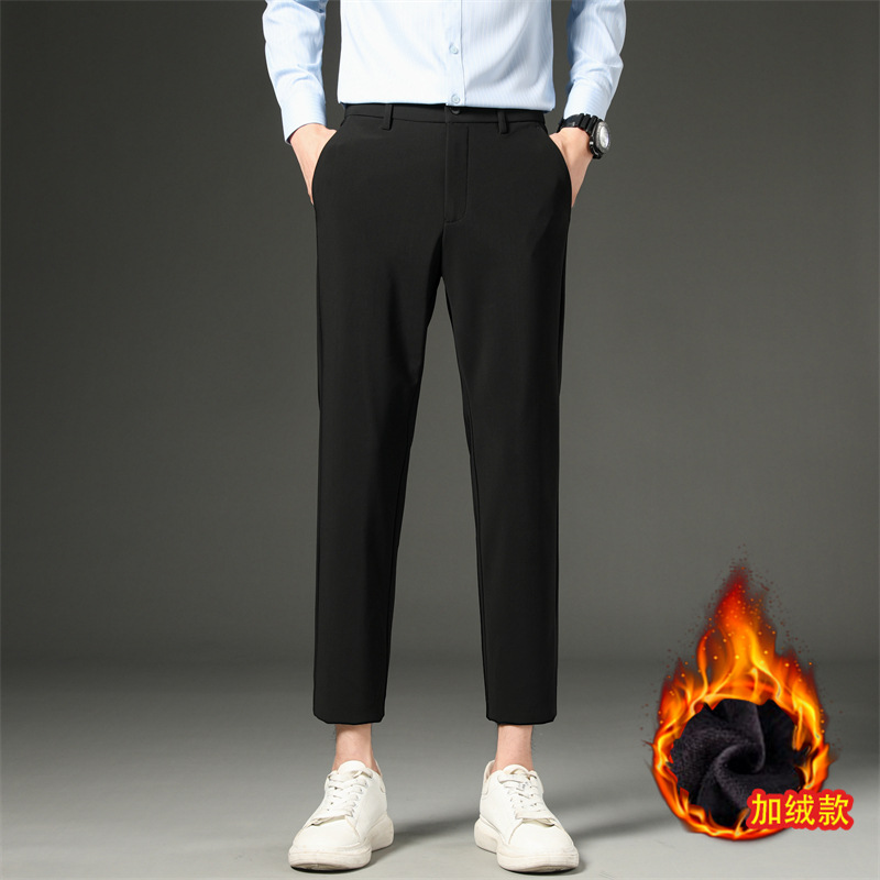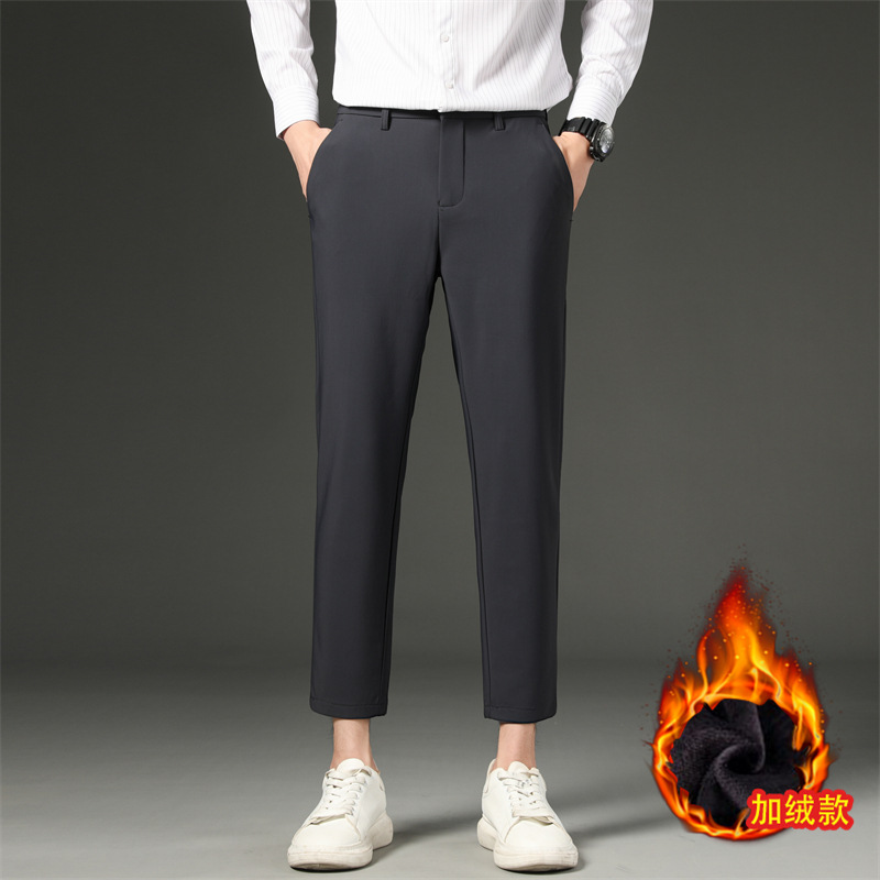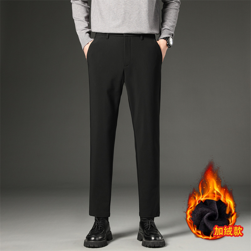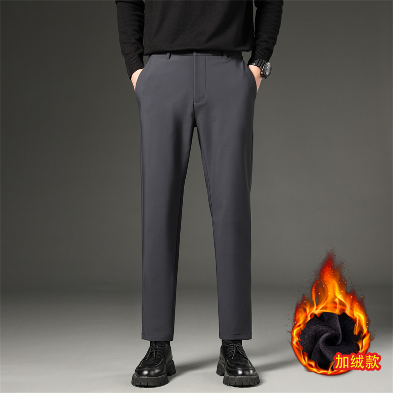 고탄력 아이스 실크 남성 정장 바지 겨울용 플리스 안감 남성 비즈니스 바지 다용도 코트 남성 바지 남성용 긴바지