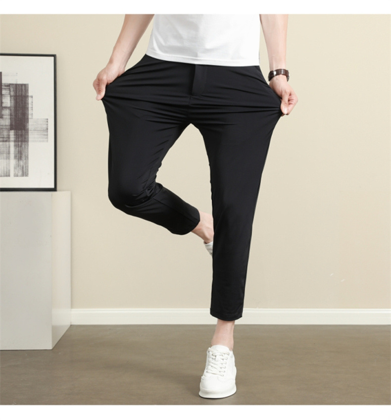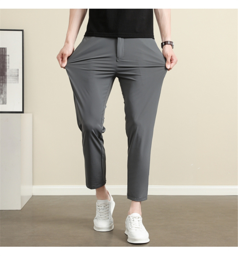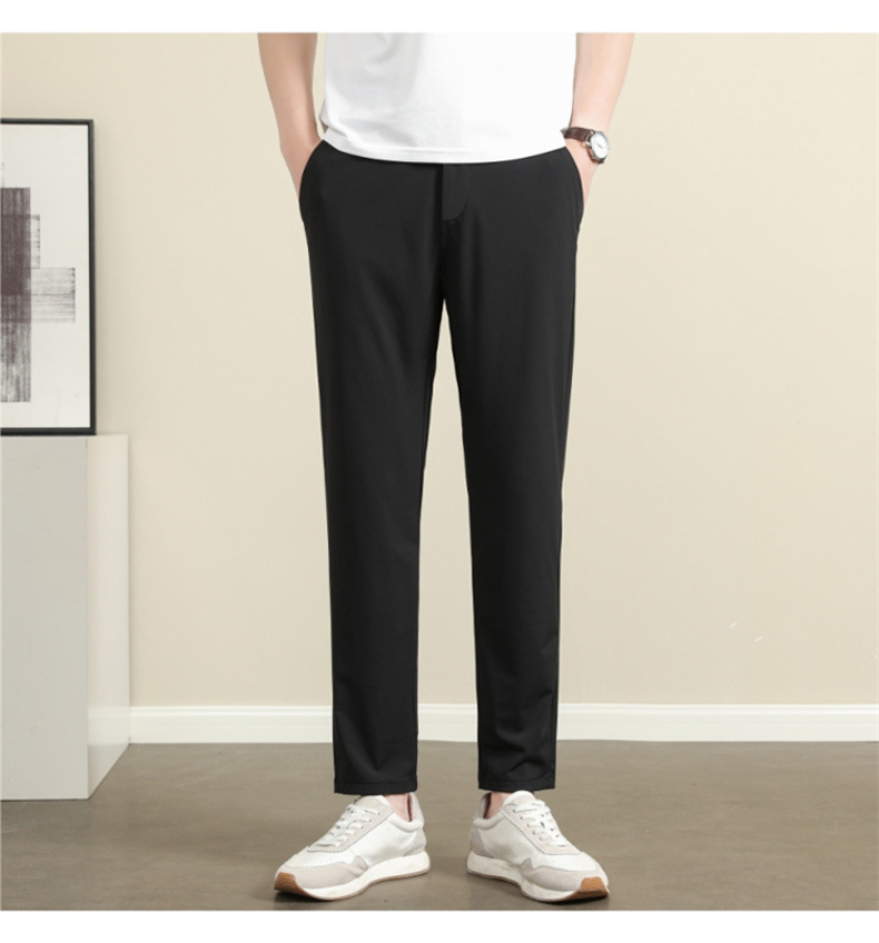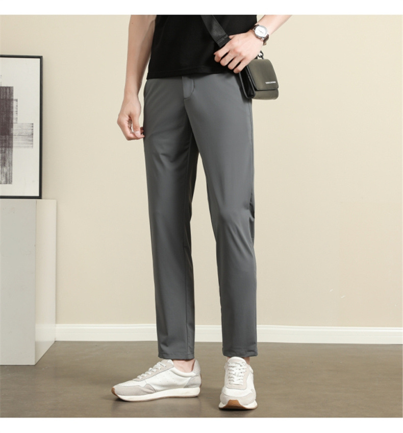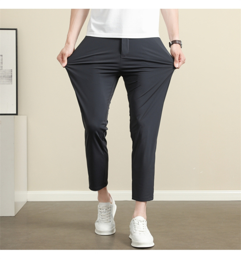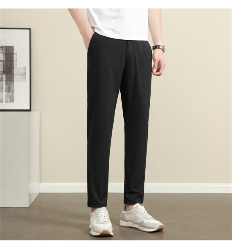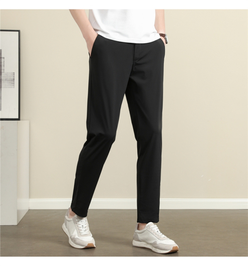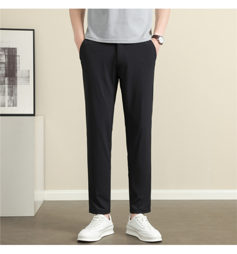 고탄력 아이스 실크 남성 정장 바지 겨울용 플리스 안감 남성 비즈니스 바지 다용도 코트 남성 바지 남성용 긴바지
