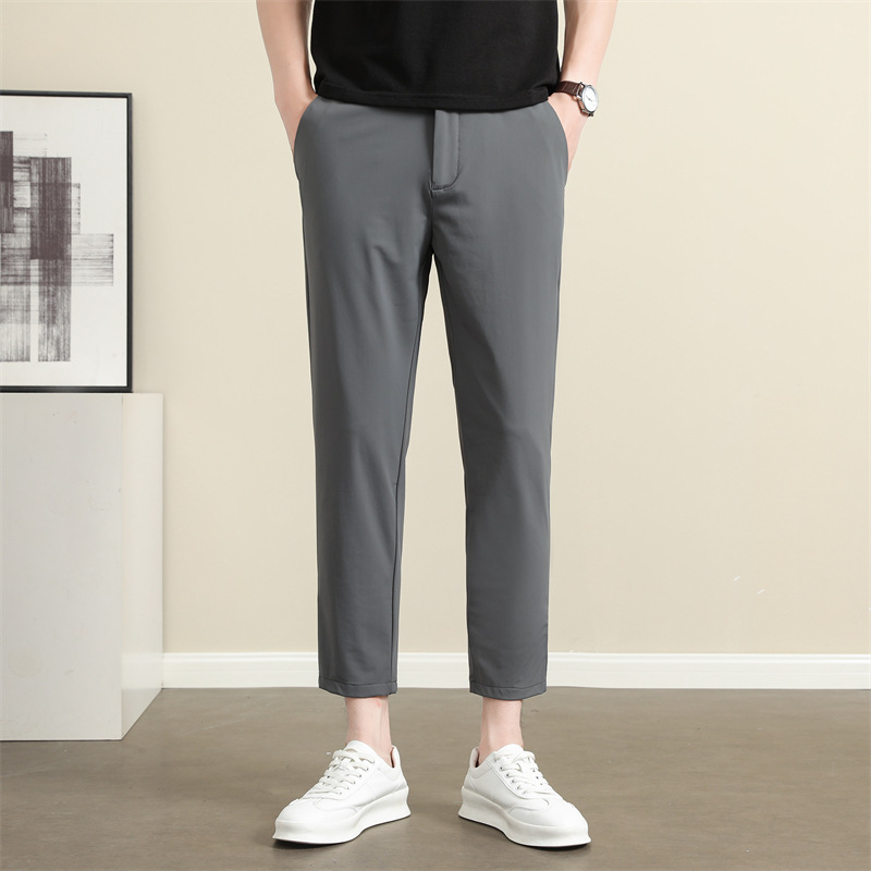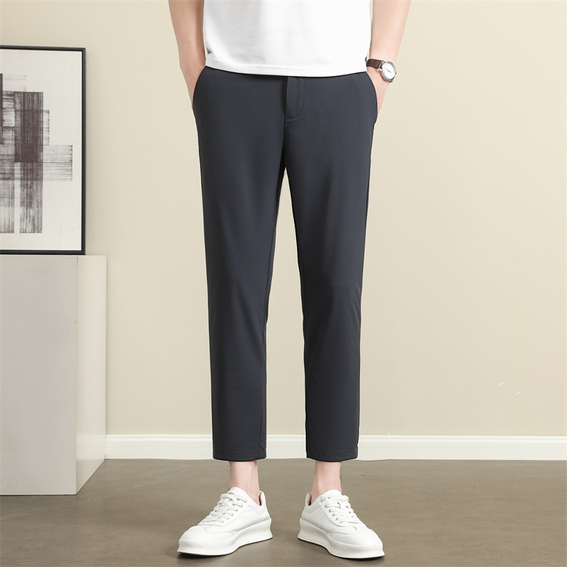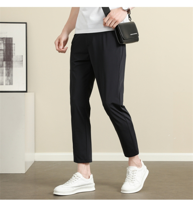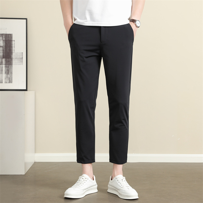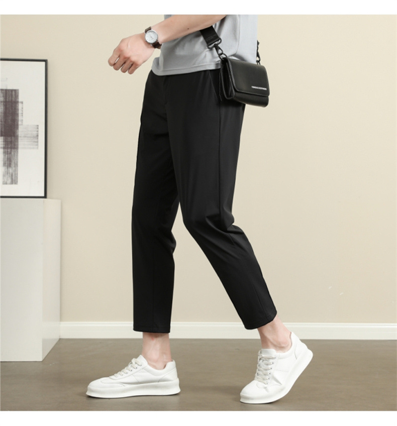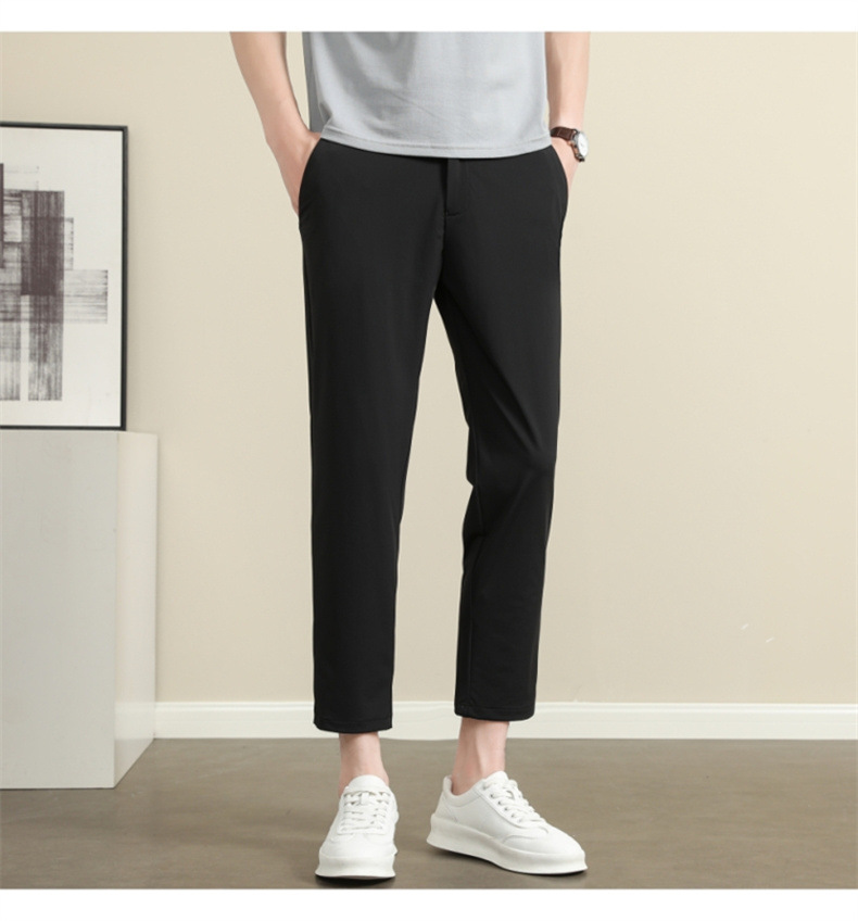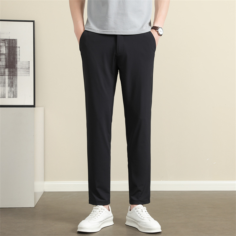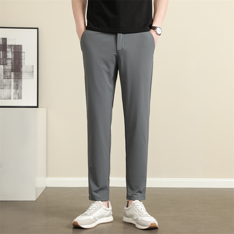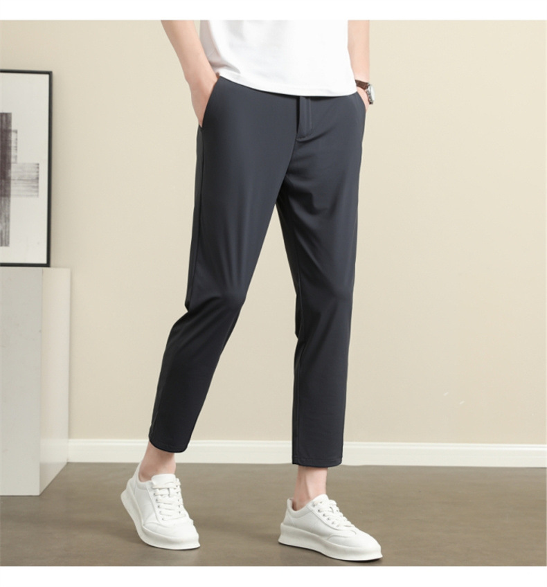 고탄력 아이스 실크 남성 정장 바지 겨울용 플리스 안감 남성 비즈니스 바지 다용도 코트 남성 바지 남성용 긴바지
