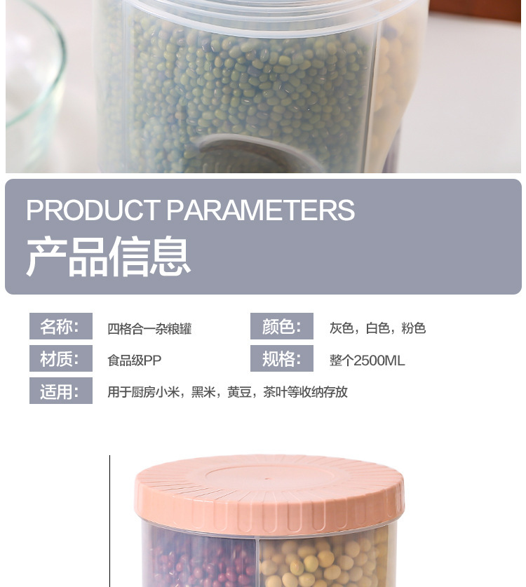 4 대 1 주방 봉인 항아리 플라스틱 말린 과일 곡물 식품 등급 저장 상자 비스킷 항아리 저장 항아리