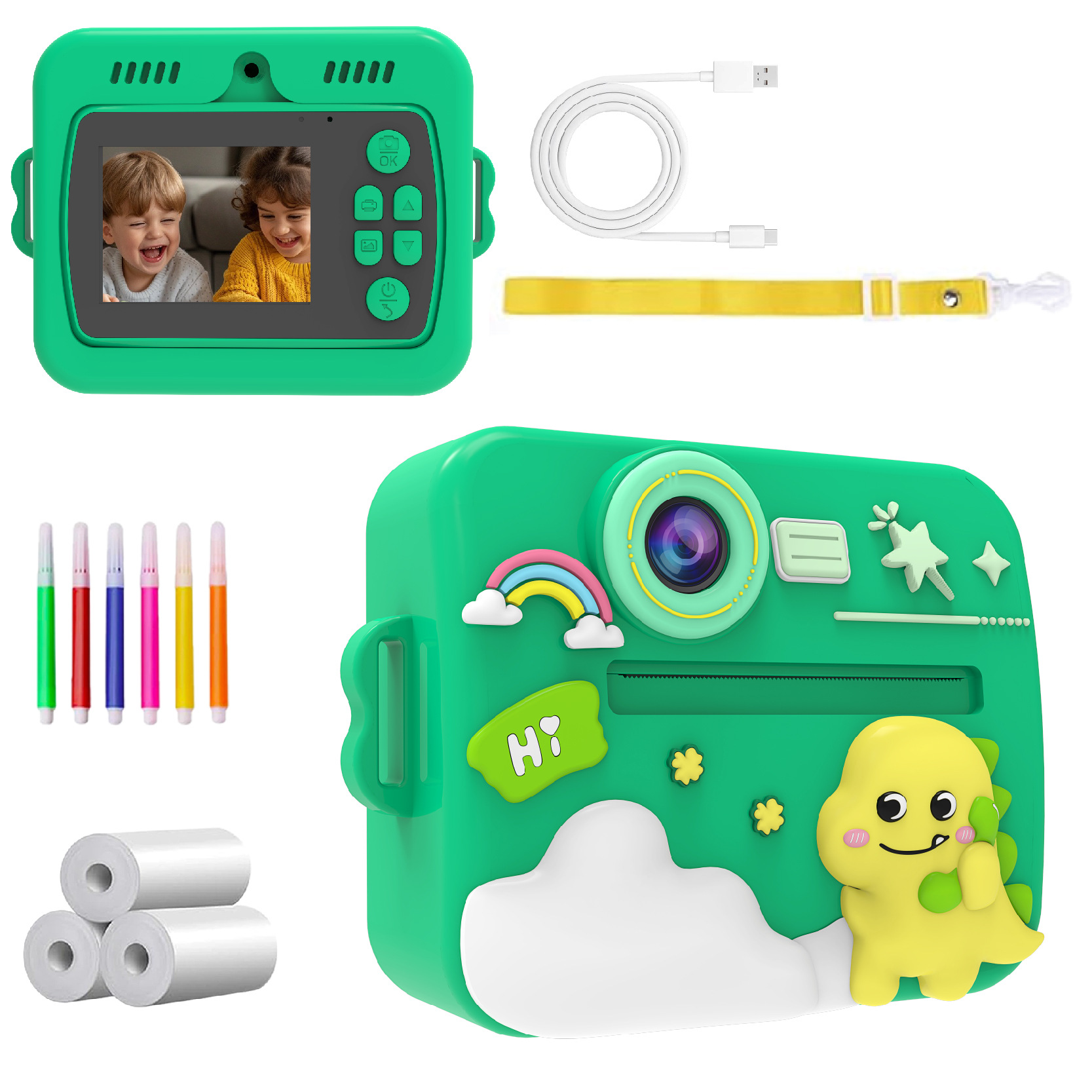 국경 간 X7 어린이용 폴라로이드 열전사 인쇄 카메라 HD 듀얼 카메라 즉석 사진 카메라