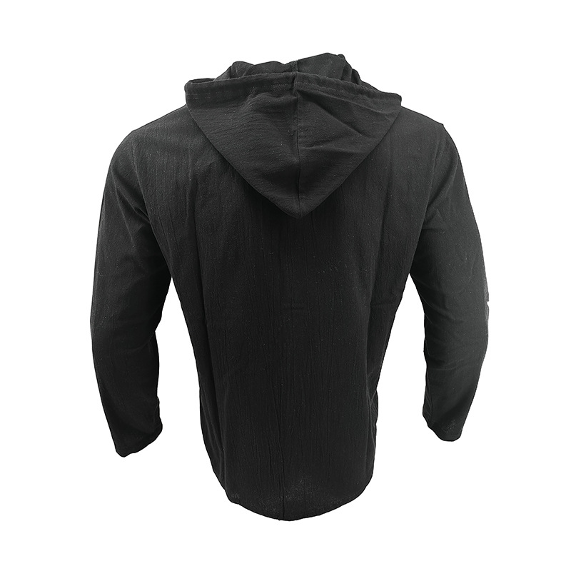 크로스 보더 남성용 솔리드 컬러 캐주얼 긴팔 셔츠 후드 드로스트링 코튼 및 린넨 카디건 트렌디하고 다재다능한 루즈 비치 티셔츠
