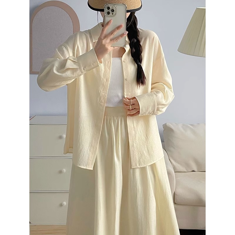 한국 스타일 캐주얼 패션 셔츠 세트 여성 여름 2024 새로운 스타일 작은 나이 감소 셔츠 투피스 세트스토어 가기
