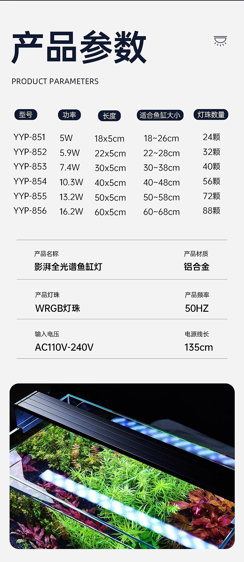 Yee 물고기 탱크 램프 led 램프 방수 전체 스펙트럼 물 잔디 램프 잔디 탱크 램프 홀더 눈 보호 슈퍼 긴 망원경 높은 침투 램프 홀더