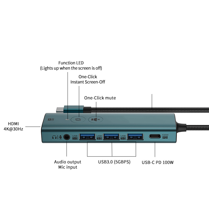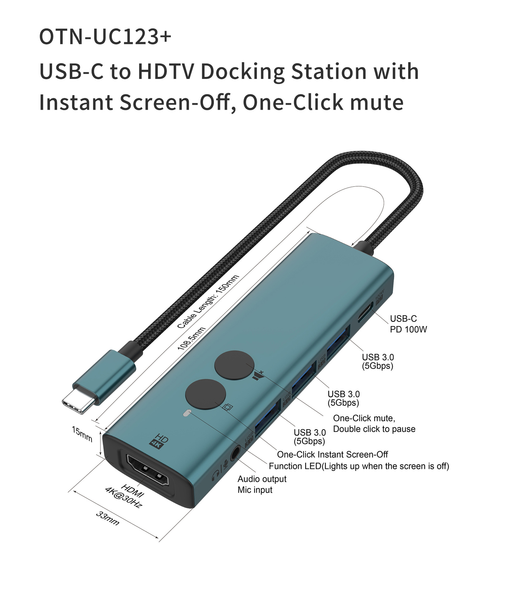 제어 키가있는 새로운 Typec 도킹 스테이션 USBHUB HD 오디오 확장 6-in -1 노트북 도킹 스테이션스토어 가기
