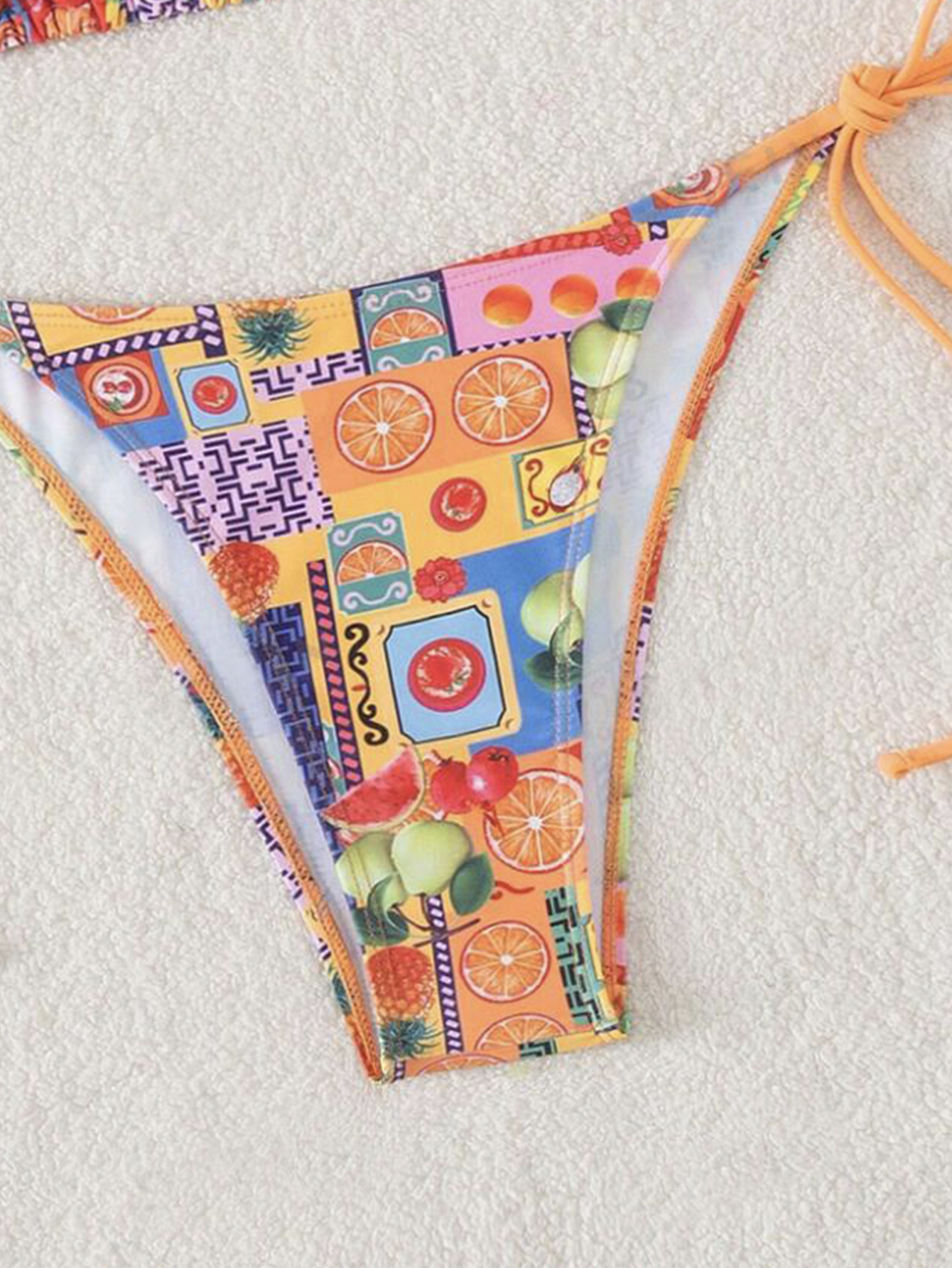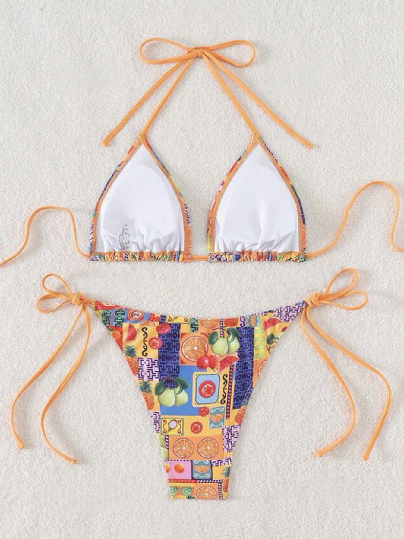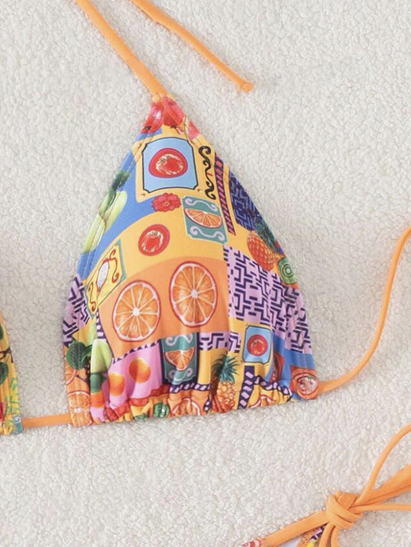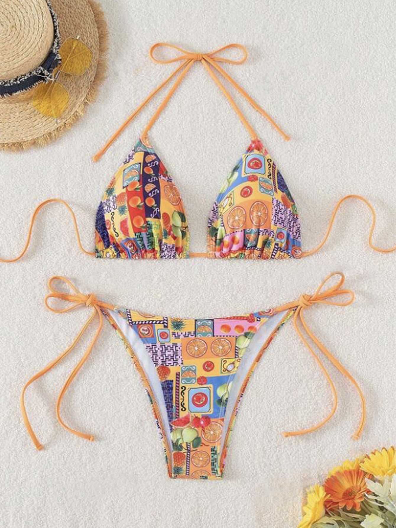 새로운 유럽과 미국의 대외 무역 여성 분할 수영복 비키니 삼각형 가방 인쇄 테더 수영복 세트
