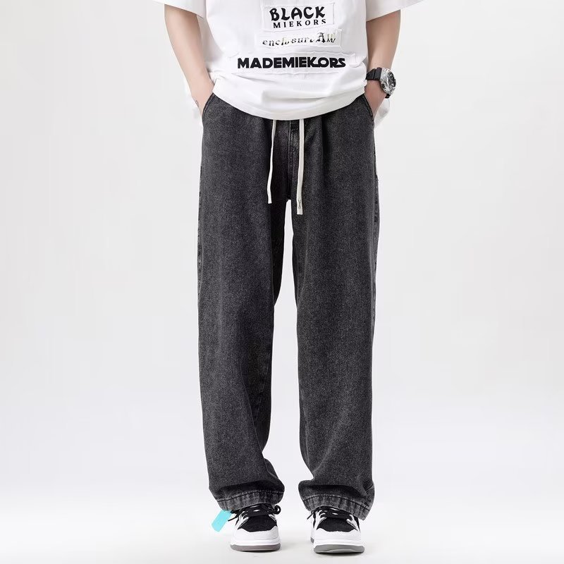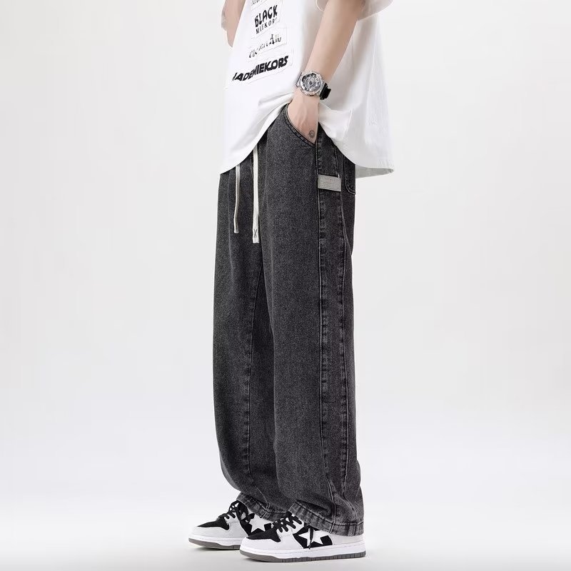 남성용 워싱 디스트레스드 청바지 2024 봄 가을 신상 아메리칸 하이 스트리트 바이브 팬츠 트렌디 브랜드 와이드 팬츠