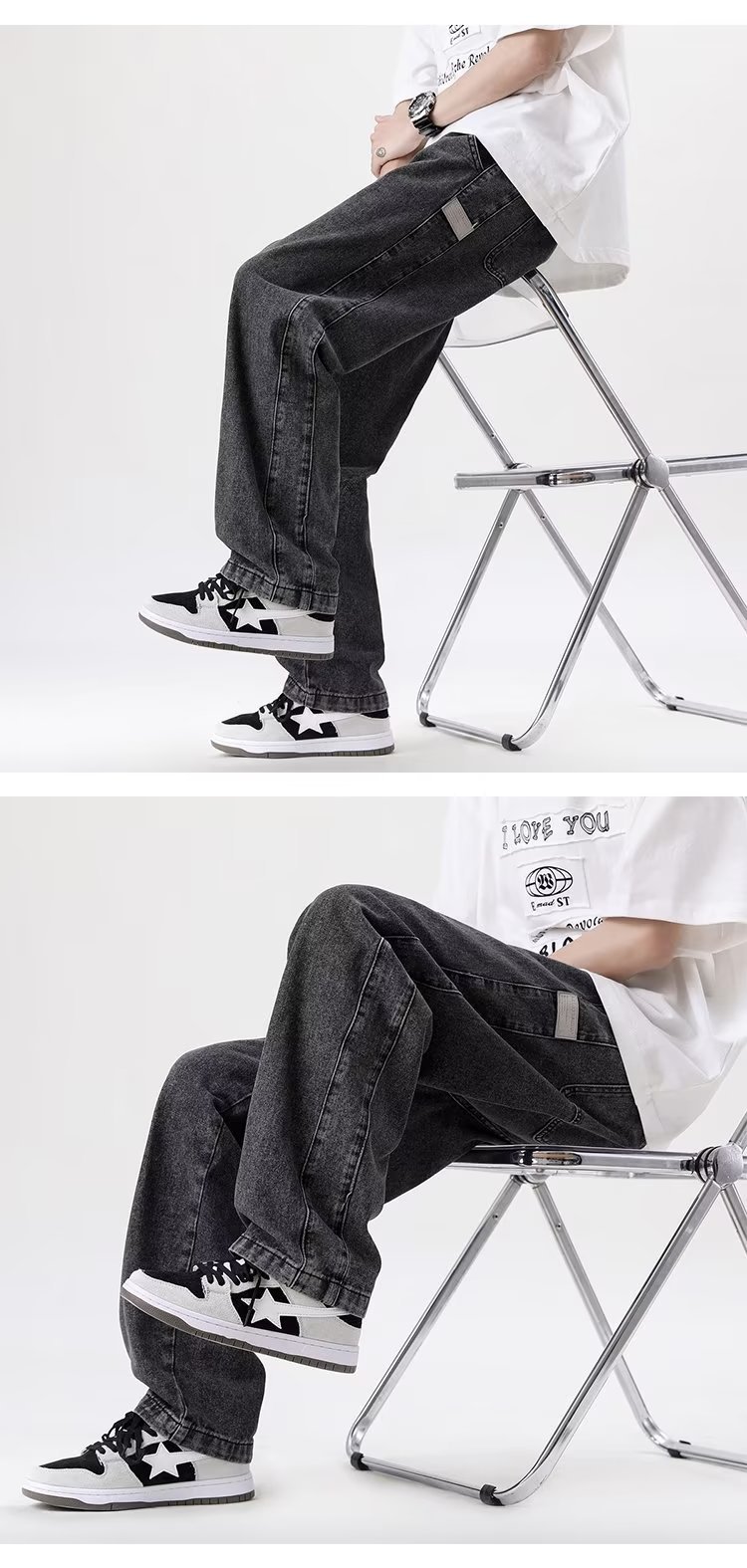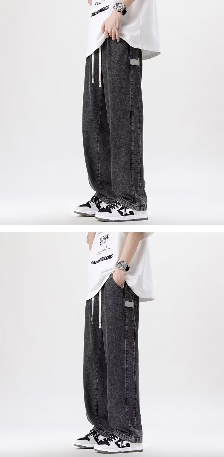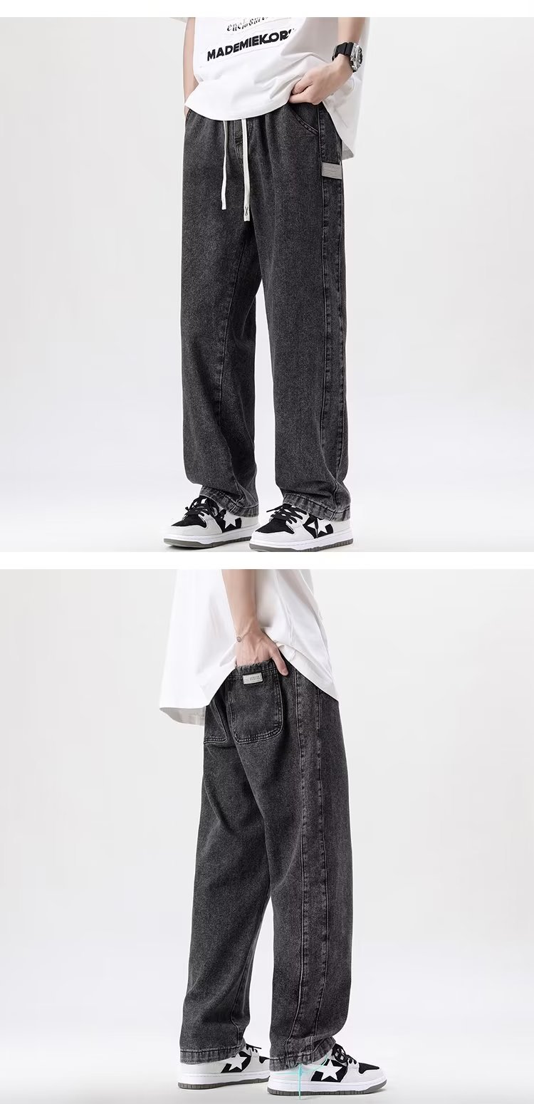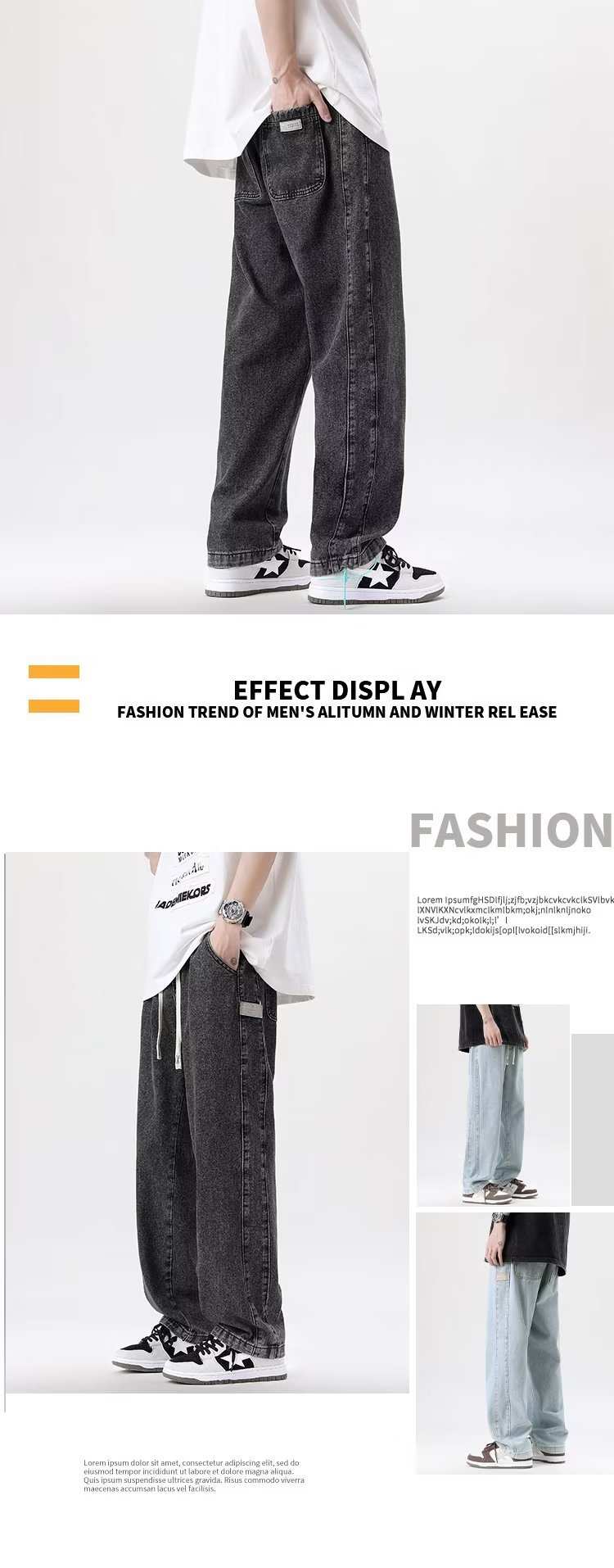 남성용 워싱 디스트레스드 청바지 2024 봄 가을 신상 아메리칸 하이 스트리트 바이브 팬츠 트렌디 브랜드 와이드 팬츠스토어 가기