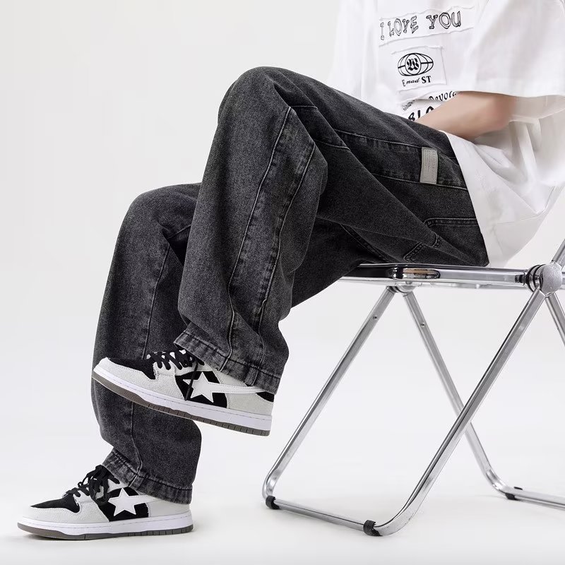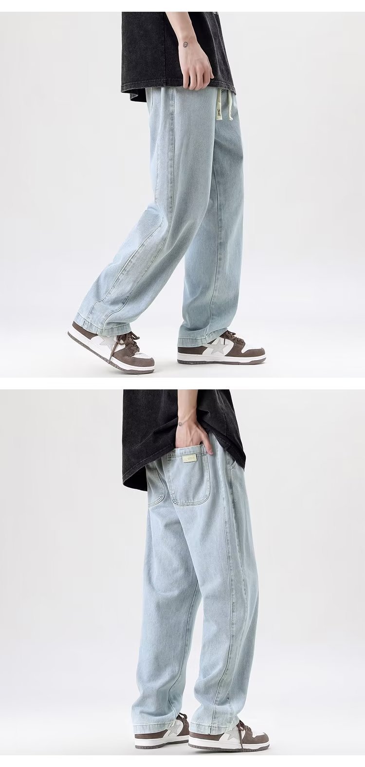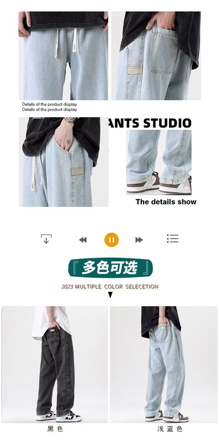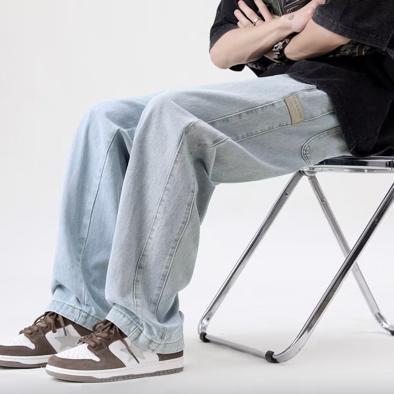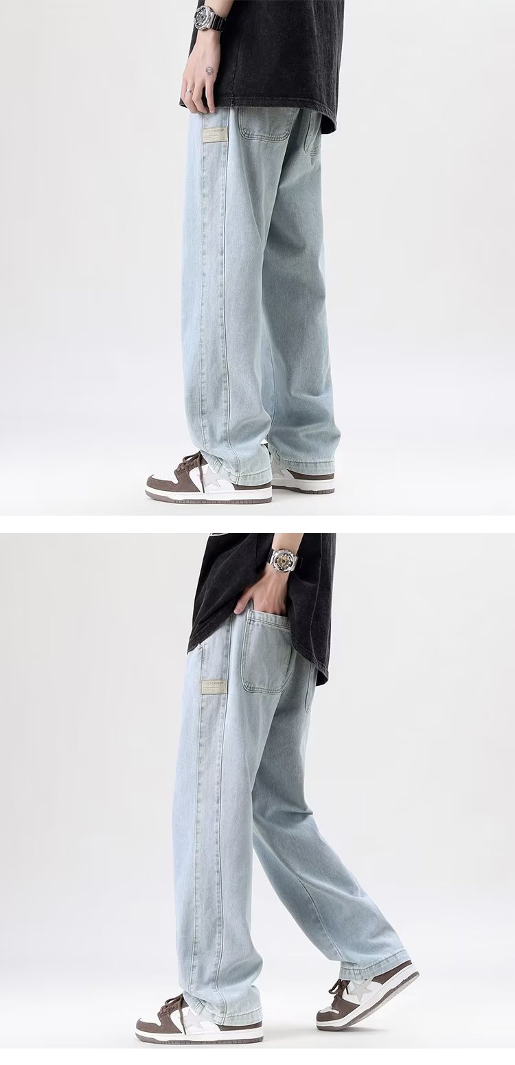 남성용 워싱 디스트레스드 청바지 2024 봄 가을 신상 아메리칸 하이 스트리트 바이브 팬츠 트렌디 브랜드 와이드 팬츠스토어 가기