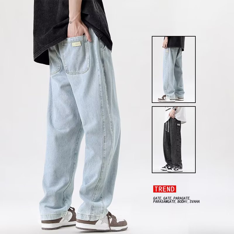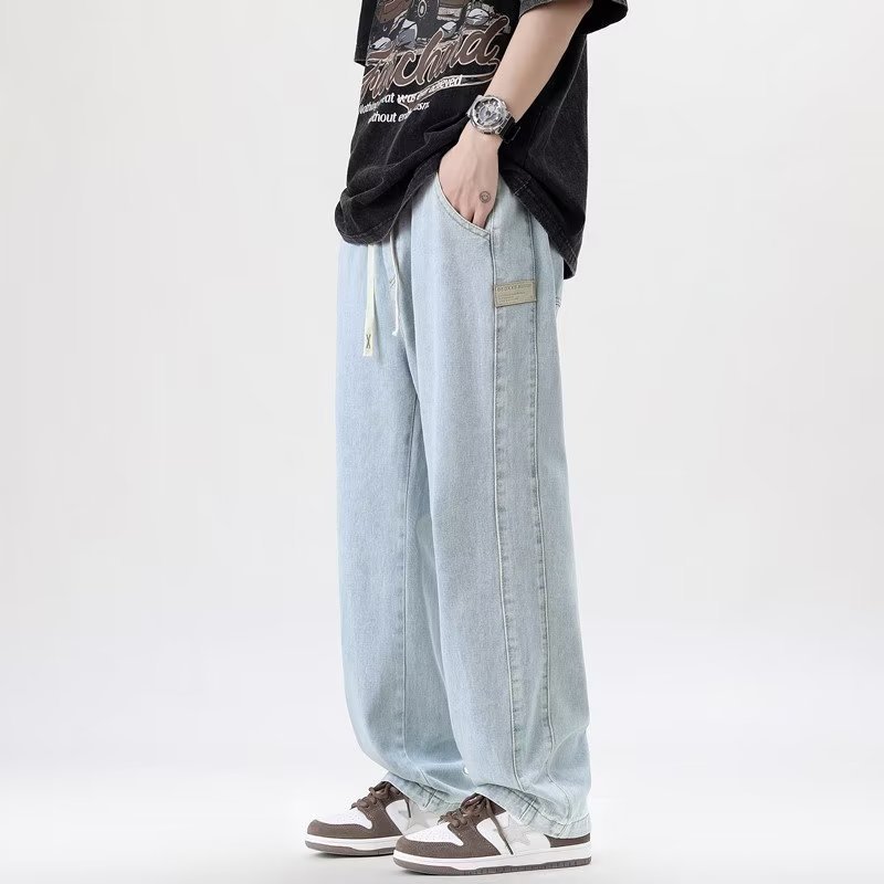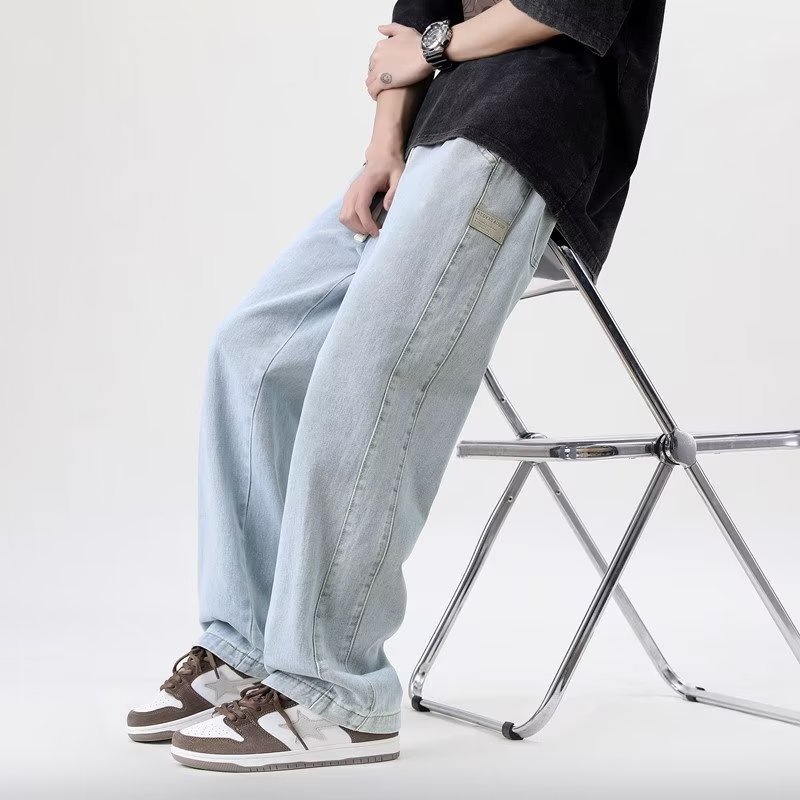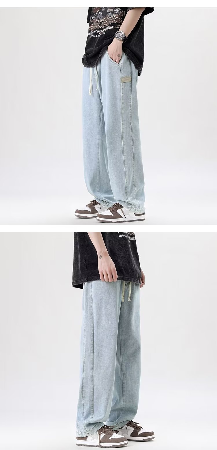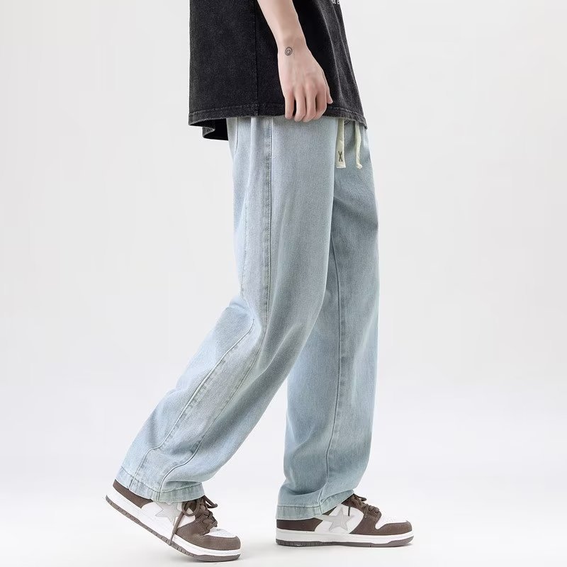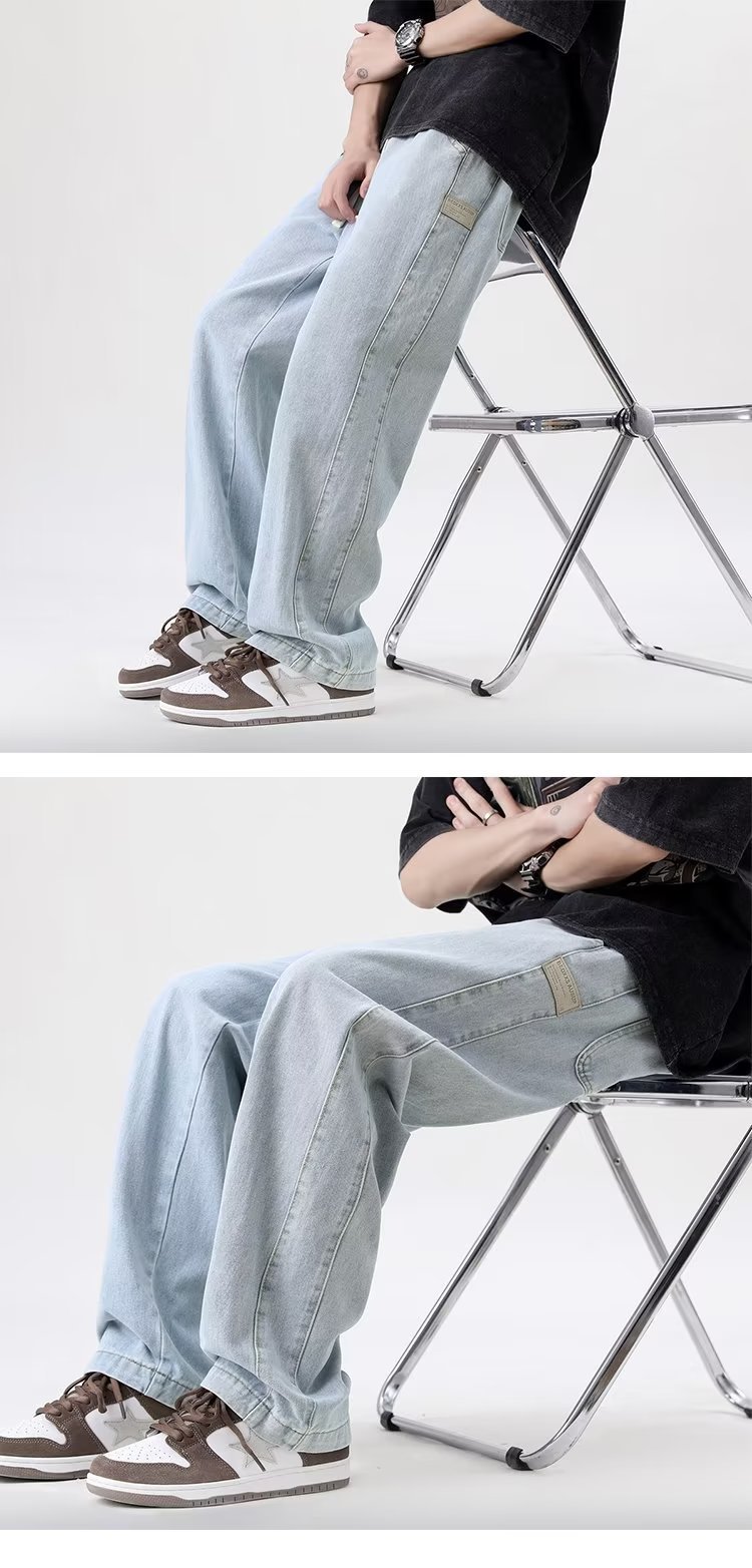 남성용 워싱 디스트레스드 청바지 2024 봄 가을 신상 아메리칸 하이 스트리트 바이브 팬츠 트렌디 브랜드 와이드 팬츠스토어 가기