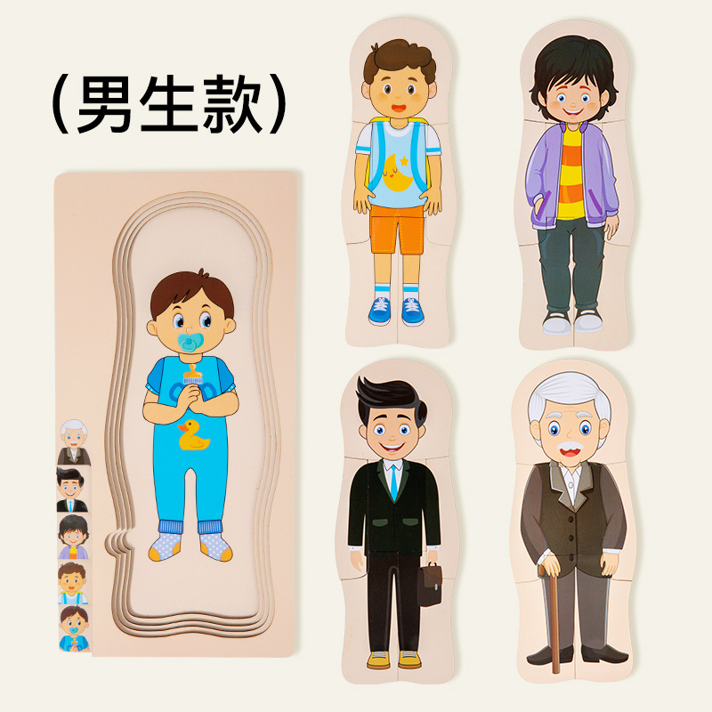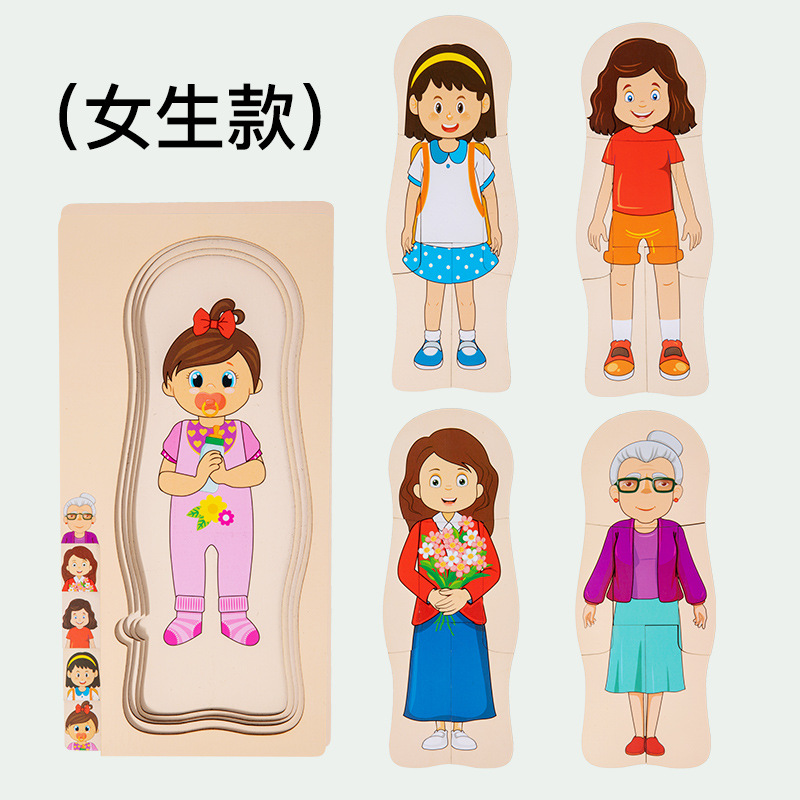 木制人体结构拼图蒙氏儿童多层平面拼图早教嵌板玩具人物成长认知