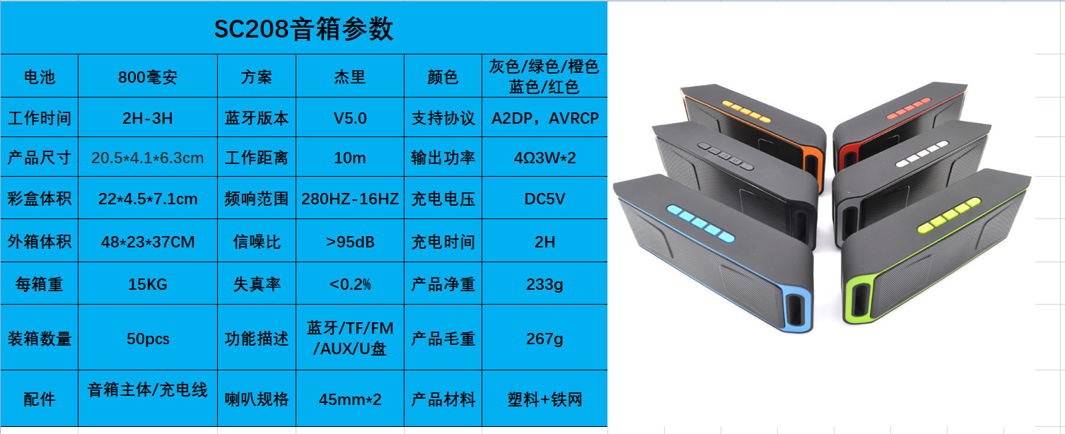 SC208蓝牙音箱大魔音双喇叭桌面音箱