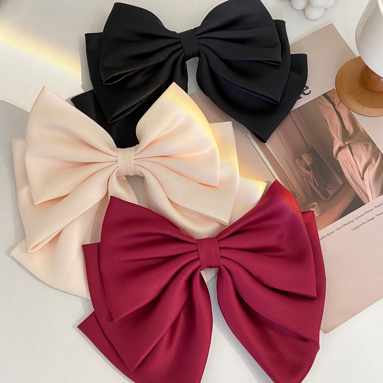 【名称】新款亚马逊手工缎面高级感蝴蝶结发饰法式复古小香风弹簧夹发夹