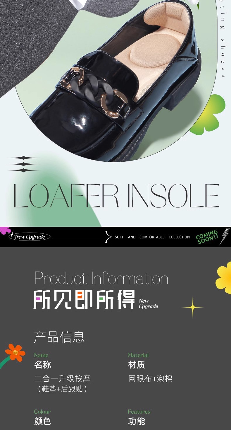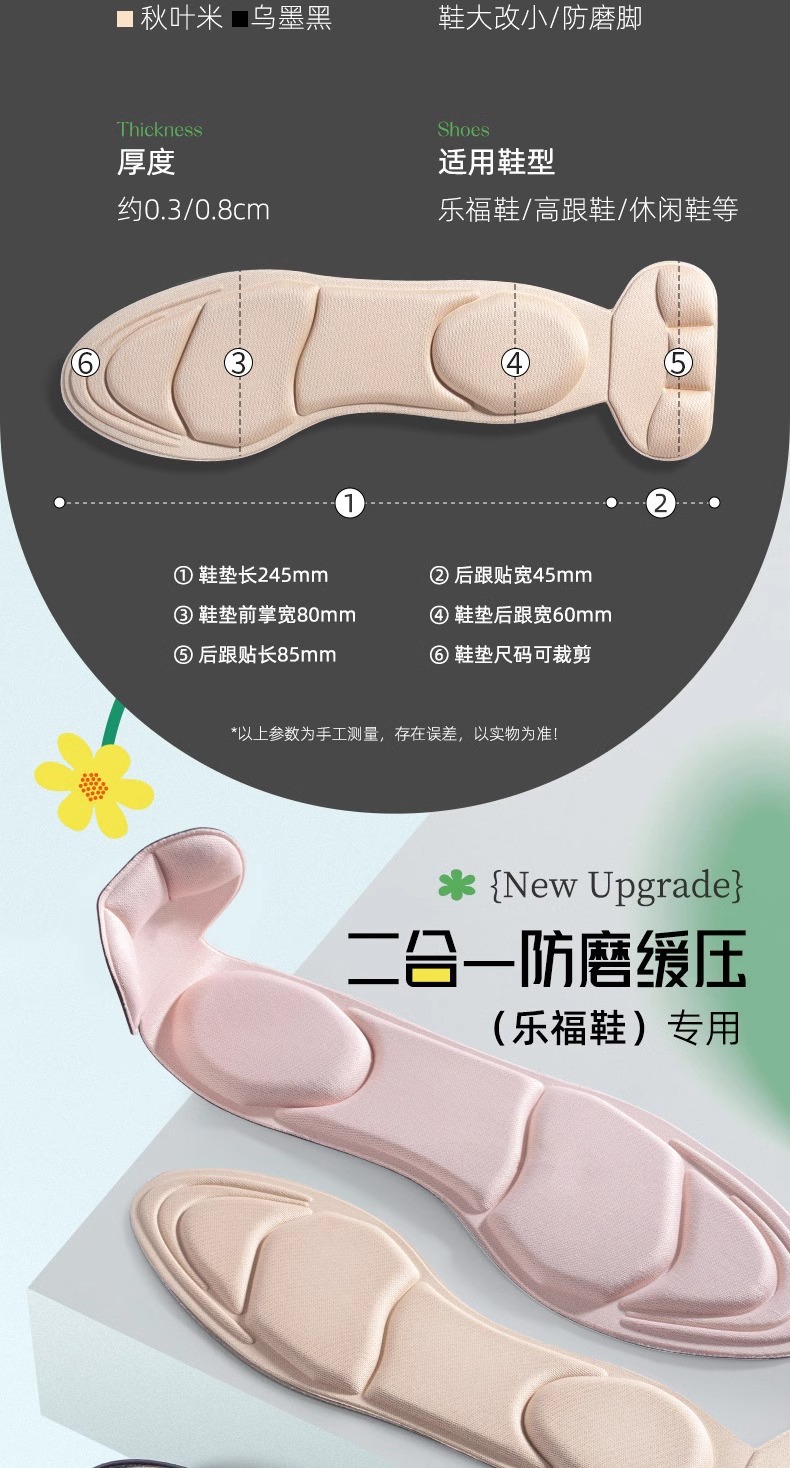 로퍼 큰 변화 작은 투인원 깔창 땀 흡수성 통기성 마모 방지 발 수축 크기 큰 1 개 크기 조정 아티팩트