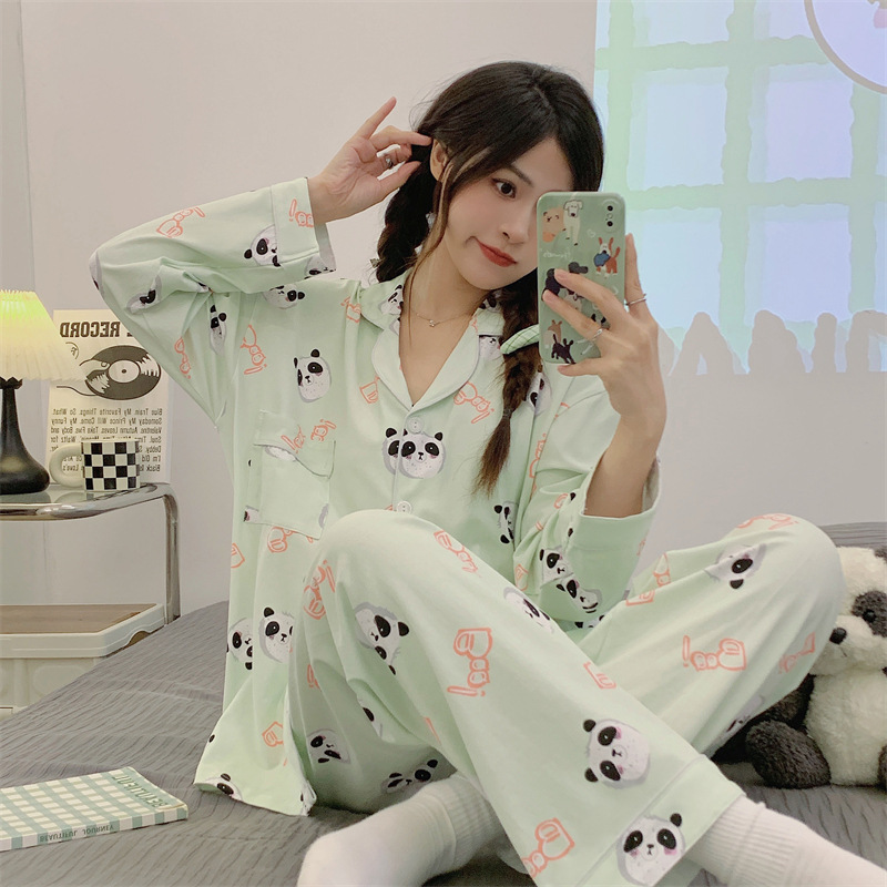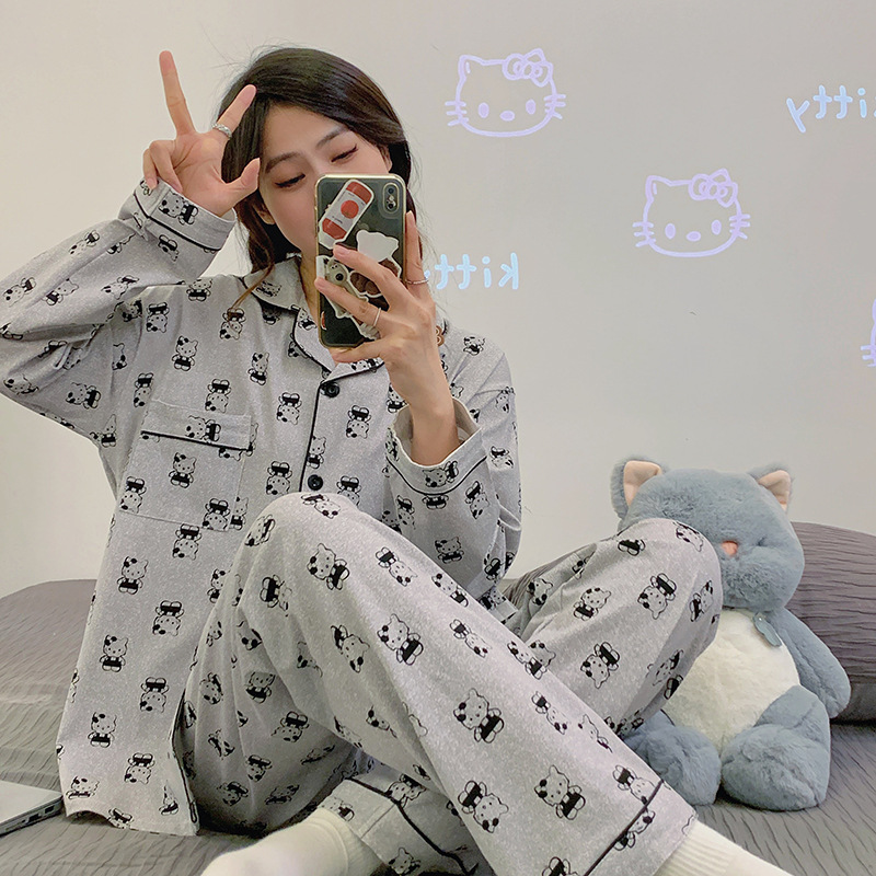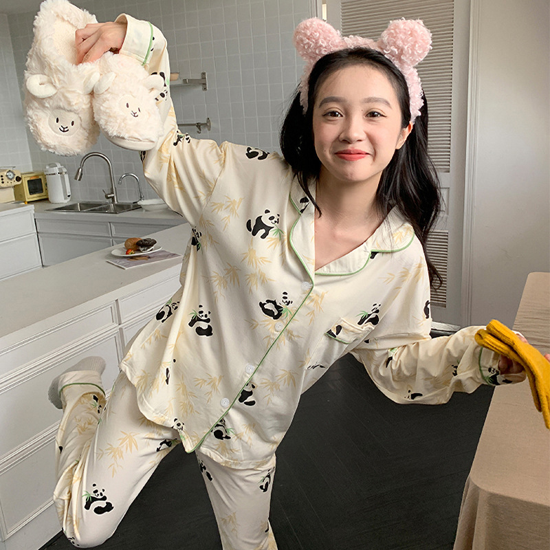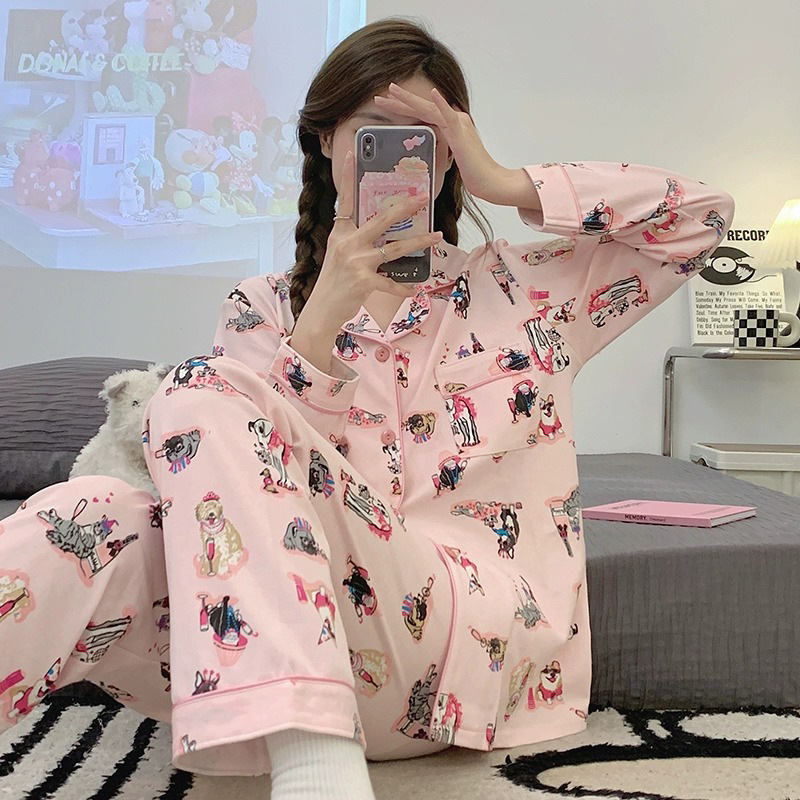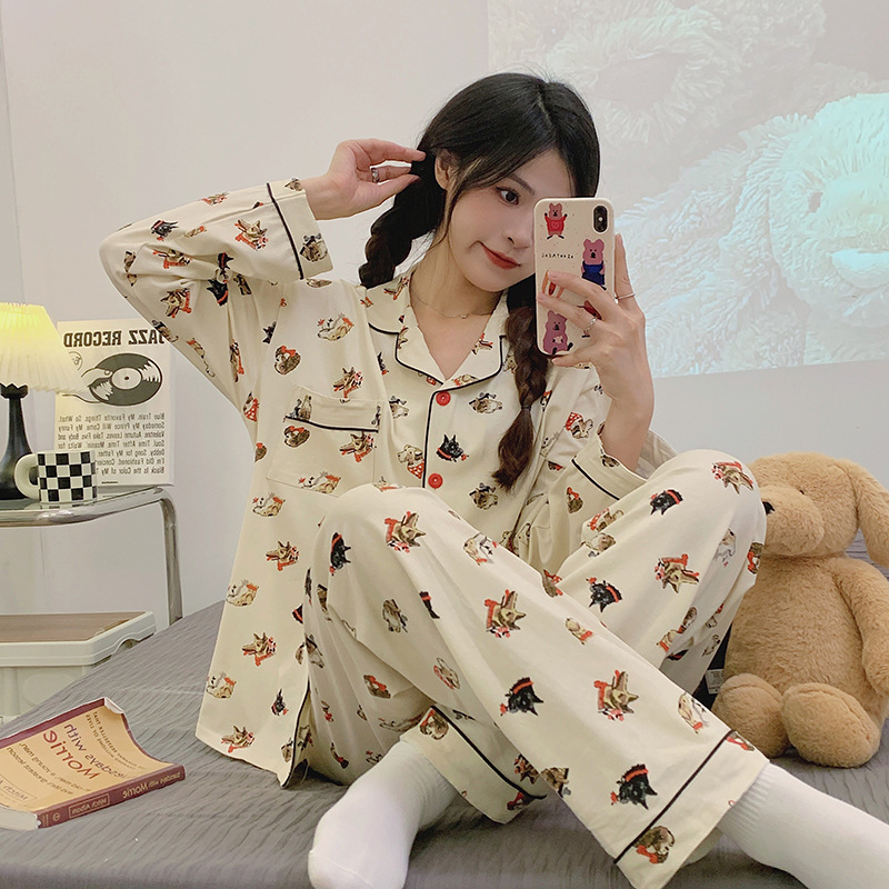 국경 봄과 가을 패션 레오파드 무늬 여성 잠옷 플러스 사이즈 버튼 카디건 더블 롱 홈 옷스토어 가기