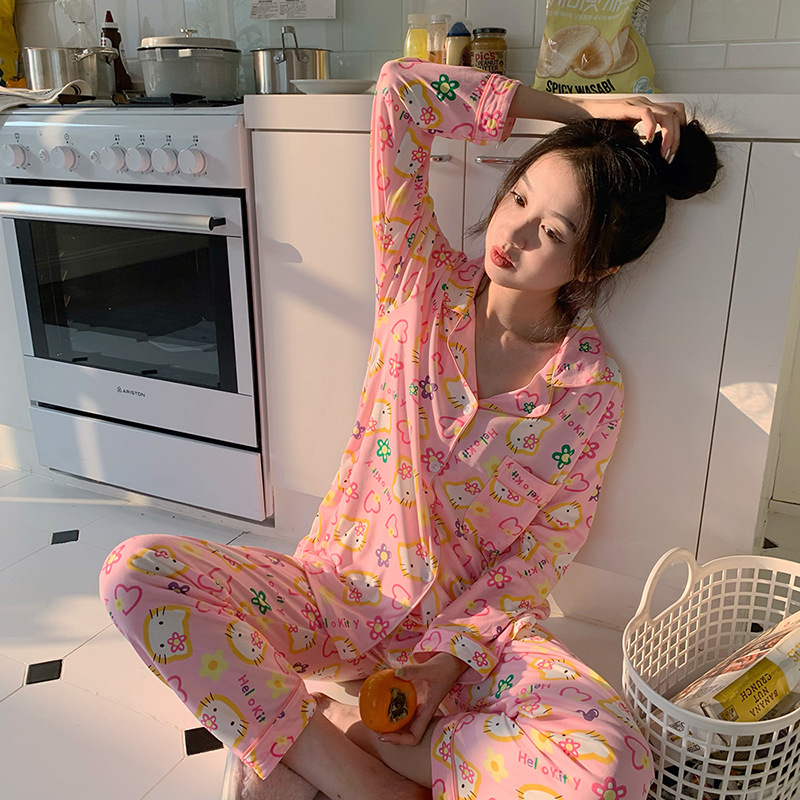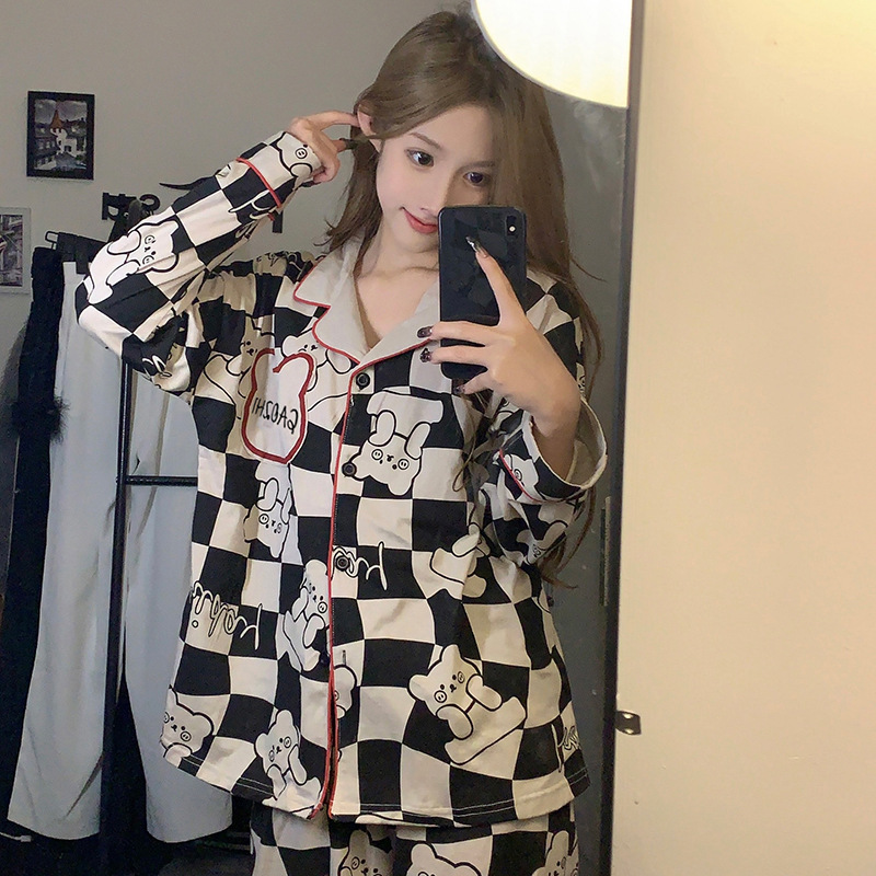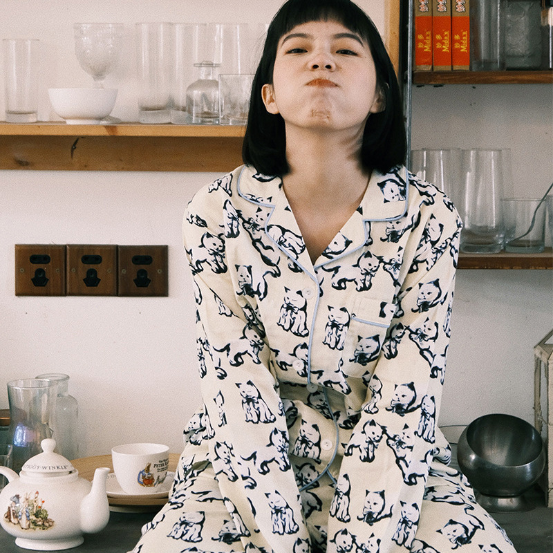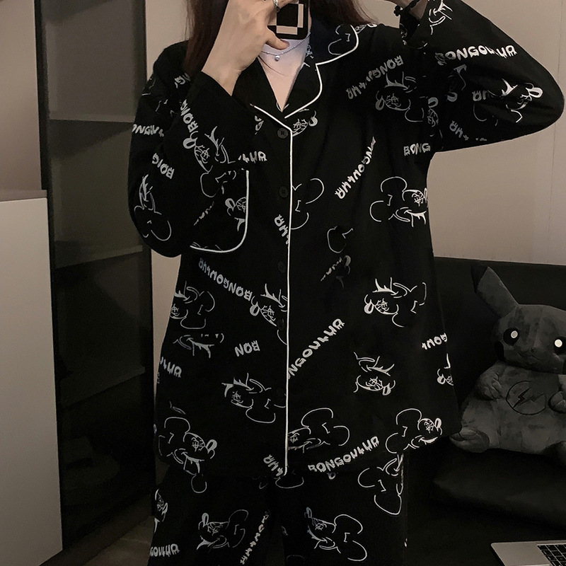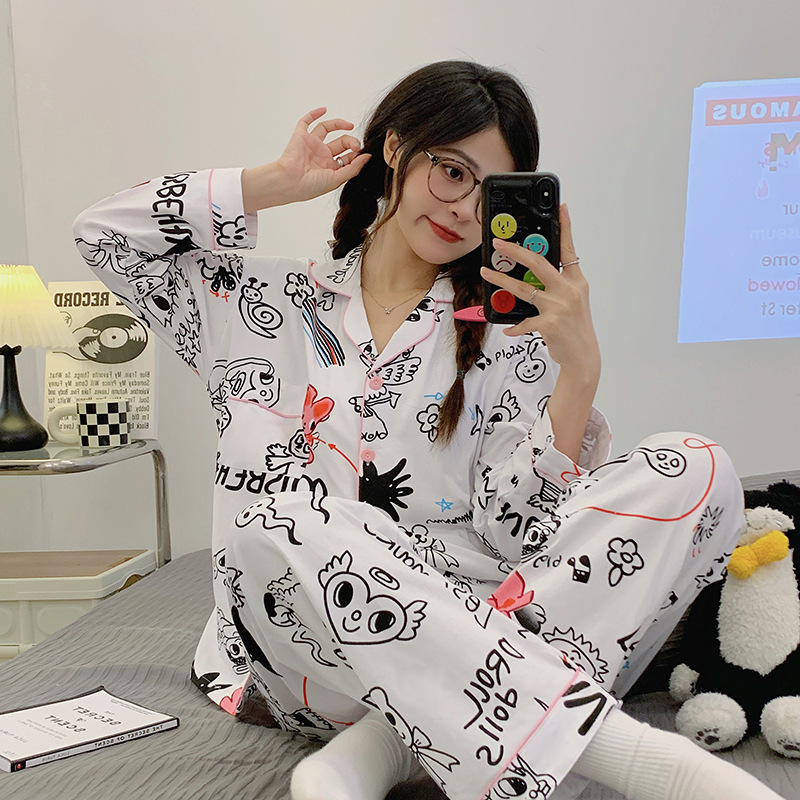 국경 봄과 가을 패션 레오파드 무늬 여성 잠옷 플러스 사이즈 버튼 카디건 더블 롱 홈 옷스토어 가기