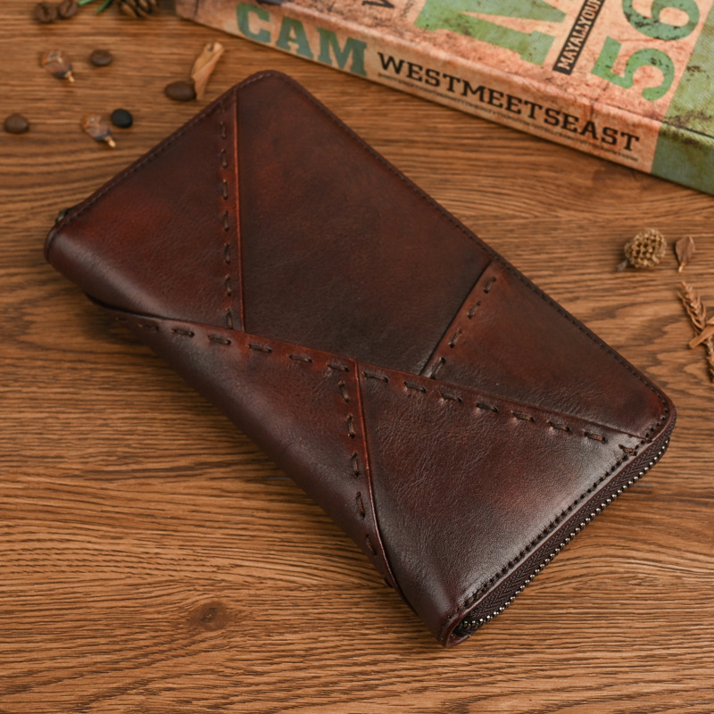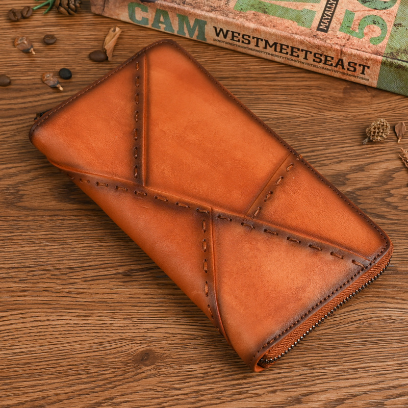 트리 크림 야채 무두질 소 가죽 빈티지 캐주얼 남성과 여성의 클러치 백 지갑 지퍼 백 클러치 백 멀티 기능의 첫 번째 레이어